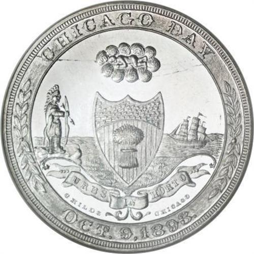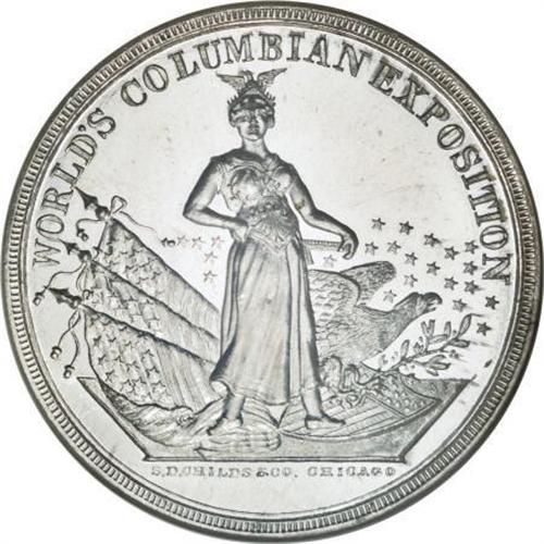 <B>1893 World's Columbian Exposition Chicago Dollar, IL HK-168, MS63 Prooflike NGC</B></I> Aluminum. Hibler-Kappen call "Very scarce." Prooflike fields exhibit sharp contrast with exquisitely struck, frosted design features.<BR><BR><b>Shipping:</b> Coins & Currency (<a target="_blank" href="http://www.heritageauctions.com/common/shipping.php">view shipping information</a>)