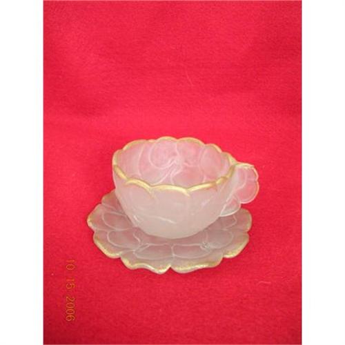 What a Find! Beautiful Frosted Glass Cup & Saucer from the 1893 Chicago World Columbian Exposition. Trimmed in frosted gold with scalloped edges and a scalloped flower petal type design in the glass as well. The unique cup handle is also scalloped with the frosted gold trim. The underneath of the saucer reads "World's Columbian 1893 Exposition." The bottom of the cup reads "World Fair, Libbey Glass Co. Toledo, Ohio." Measures 1 3/4 inches high. The cup is 2 1/2 inches across and the saucer is almost 4 inches across. There is a minor dull nick on the underside of the saucer, which I don't believe you can even see. Overall a magnificient piece. We carefully pack and double box all of our fine glassware.