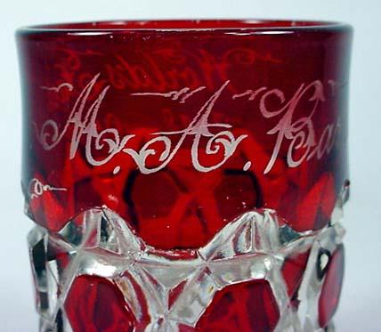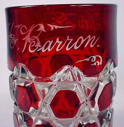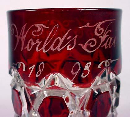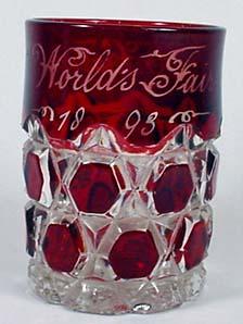 1893 Chicago World'S Fair Ruby Flash Souvenir Glass - Also Engraved - M. A. Barron. Approx. 3.75" Tall