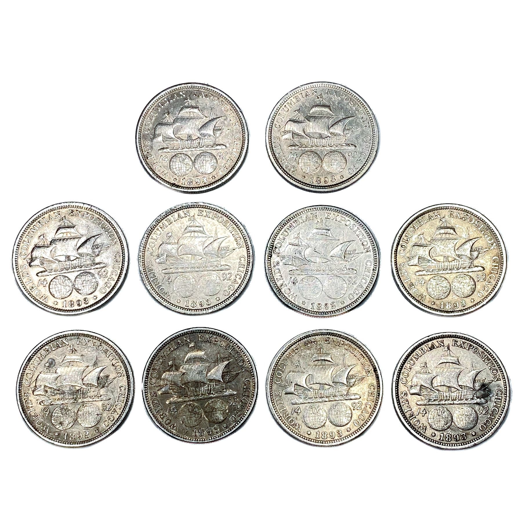 1893 Circulated Columbian Half Dollars [10 Coins]