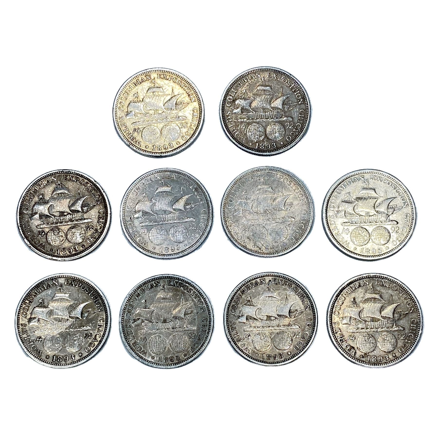 1893 Circulated Columbian Half Dollars [10 Coins]
