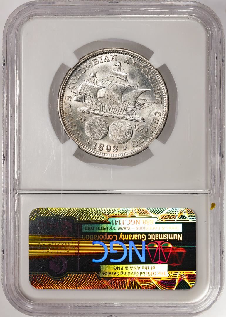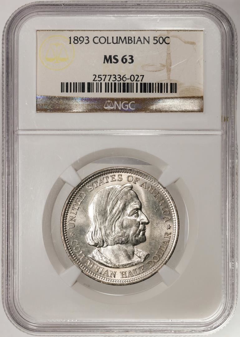 One 1893 Columbian Commemorative Half Dollar Coin NGC MS63. NGC Certified.