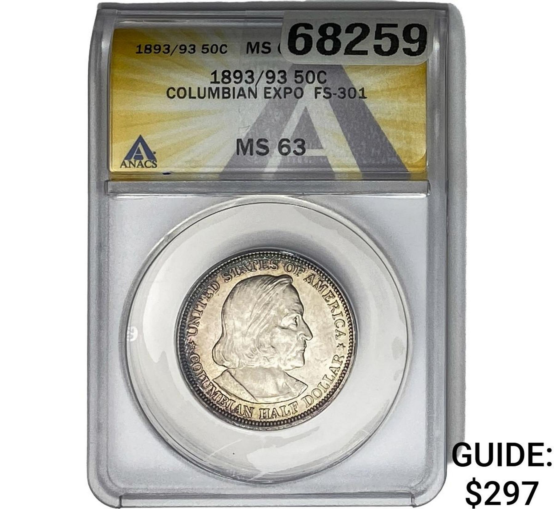 1893 Columbian Expo Half Dollar ANACS MS63 FS-301