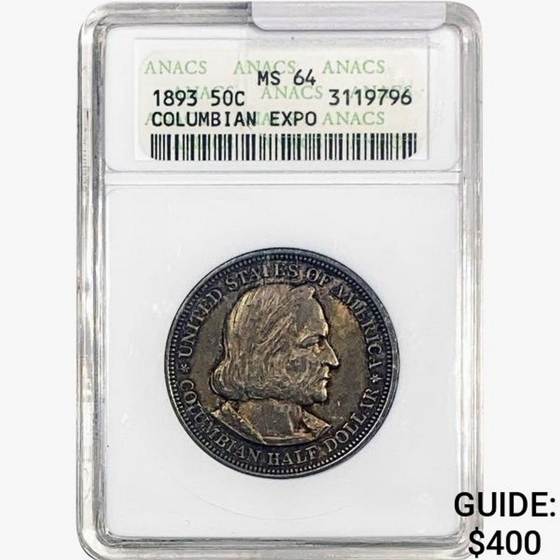 1893 Columbian Expo Half Dollar ANACS MS64
