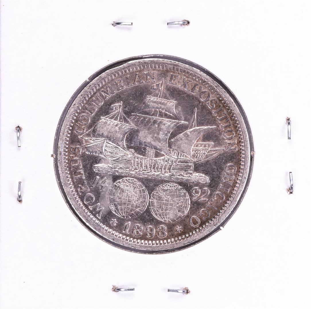 One 1893 Columbian Exposition Commemorative Half Dollar Coin.