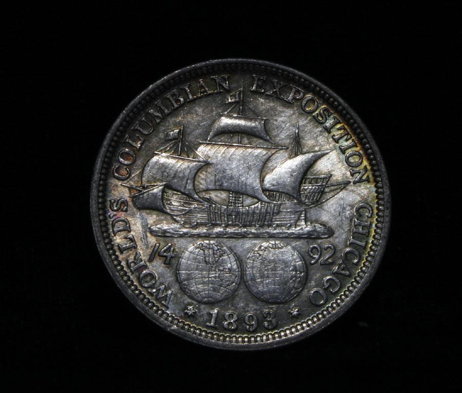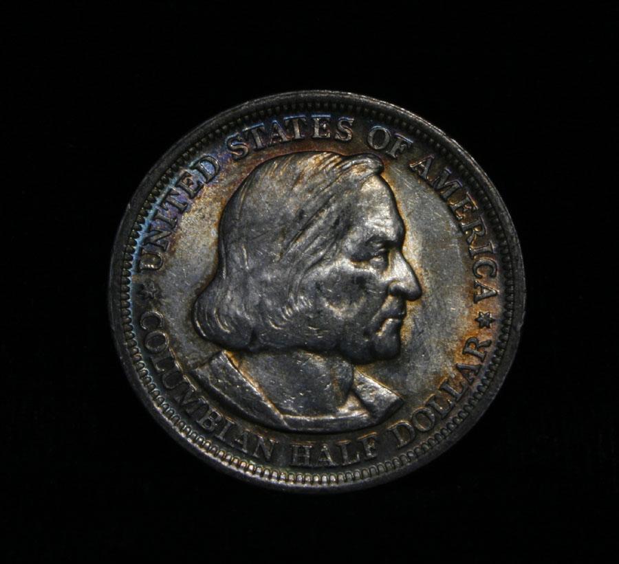 A nice toned example, with great blues on the obverse at 11 O' Clock. Might actually be an Unc that has been in and out of flips too many times over the past 120 years. The Columbus Half dollar along with the Isabella Quarter were minted in honor of the 400th anniversary of Columbus' voyage to the new world. It was first distributed at the worlds fair honoring that voyage. When examining a Columbian Exposition half dollar The first points to show wear are Columbus’ eyebrow, cheek and the hair behind his forehead and jaw. On the reverse, check the foresail and mainsail, as well as the right side of the Eastern Hemisphere. Coin World's Coin Values lists an au50 at $20 and an ms60 at $30. (note* it currently melts just under $10) Estimated Value $25