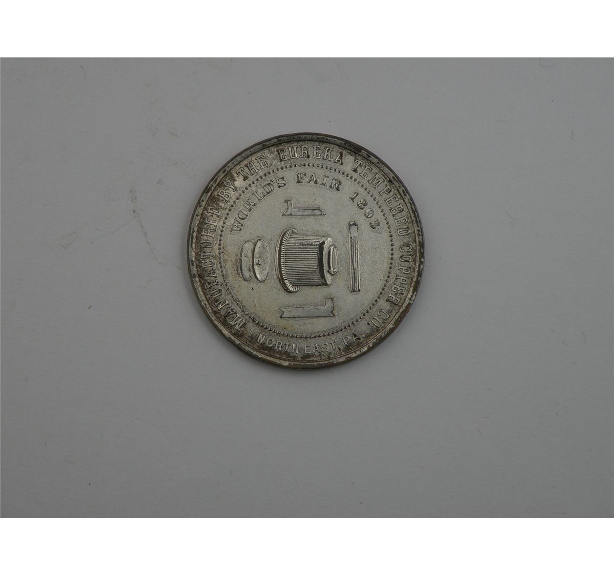 1893 Columbian Exposition Medal. Silvered copper. 37mm. The Eureka Tempered Copper Co. Eglit- 22, similar to the prior lot only silver- plated. Ext. Fine. Est.$65
