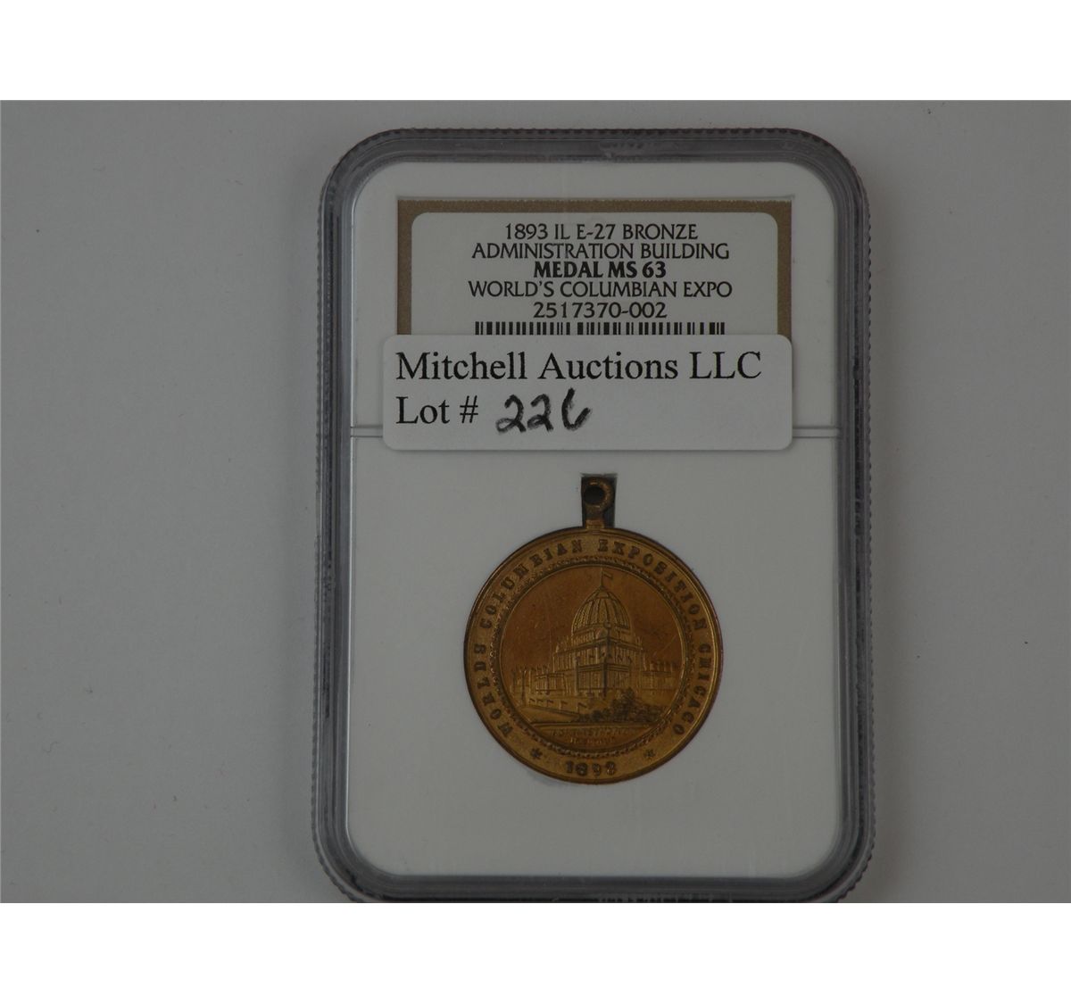 Any items graded by third party grading services (certified lots) are so indicated within the lot descriptions. Other indications of grade are the opinion of Mitchell Auctions LLC. Although we endeavor to be as accurate as possible with regard to grade, such items may be graded higher or lower if submitted to a third party grading service. Feel free to contact our offices prior to the sale for further information and/or more a detailed description of any lot.