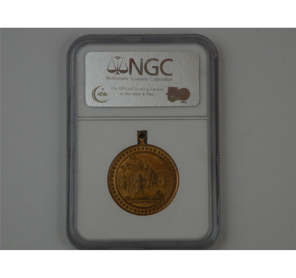 1893 Columbian Exposition Medal. Brass, 28mm. Administration Building/ Landing of Columbus. Eglit- 27. NGC MS63. Est.$75