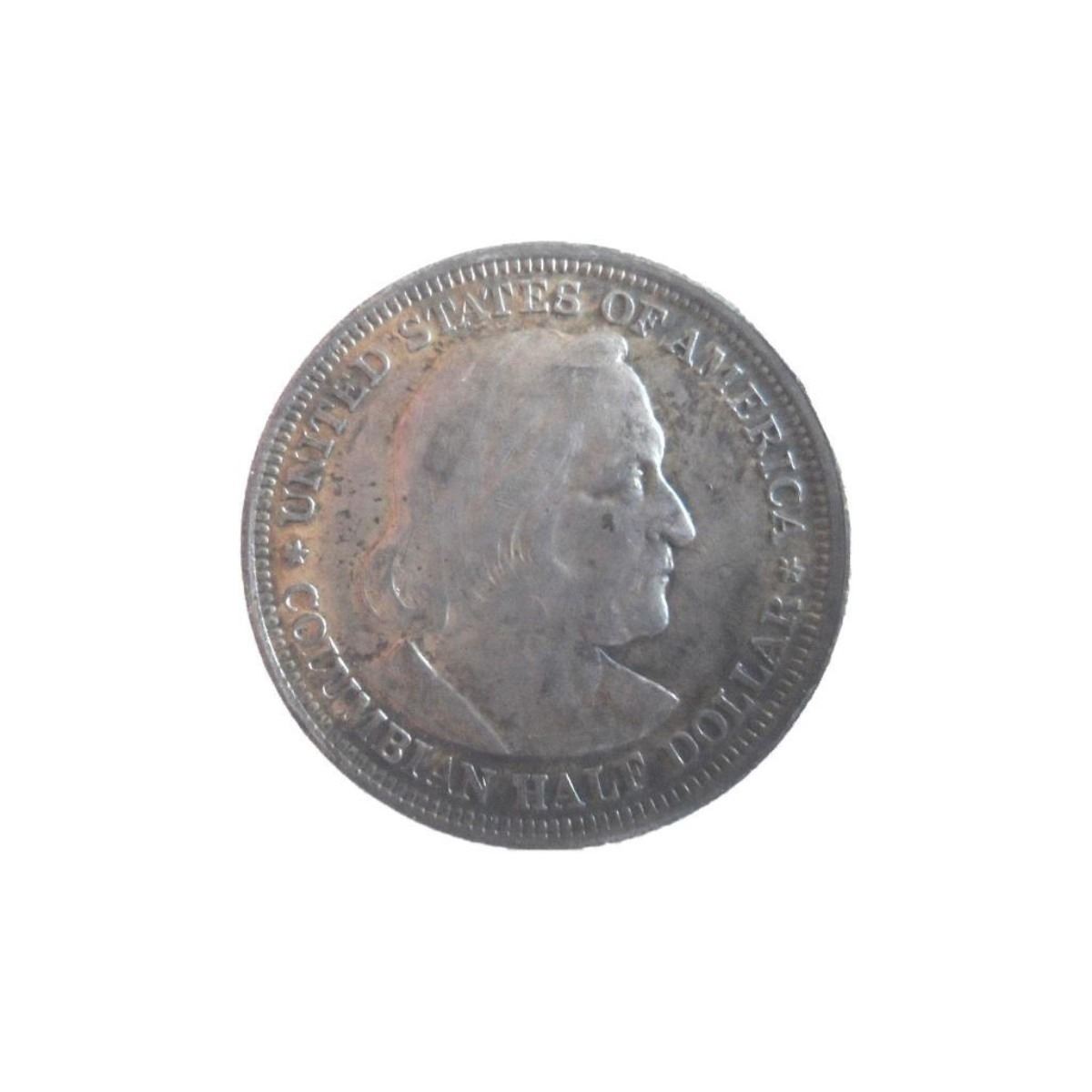 1893 United States silver half dollar, commemorative coin from the Columbian Exposition, Chicago Fair. Uncertified, business strike, ungraded, circulated. Philadelphia mint. 9168-020118-EB-66855