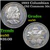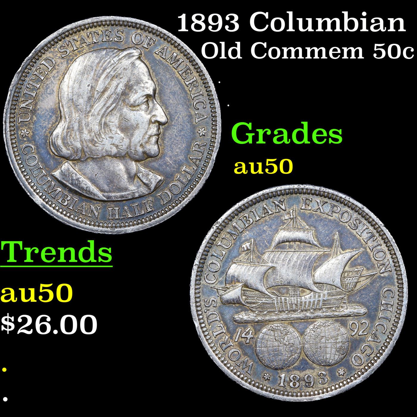 1893 Columbian Old Commem Half Dollar 50c Grades AU, Almost Unc