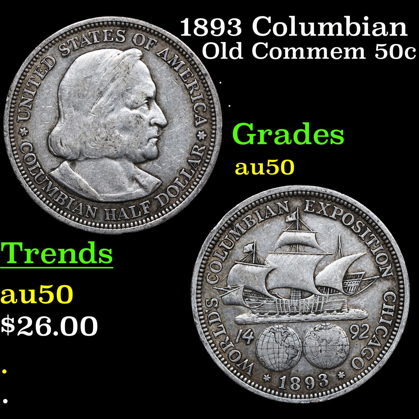 1893 Columbian Old Commem Half Dollar 50c Grades AU, Almost Unc