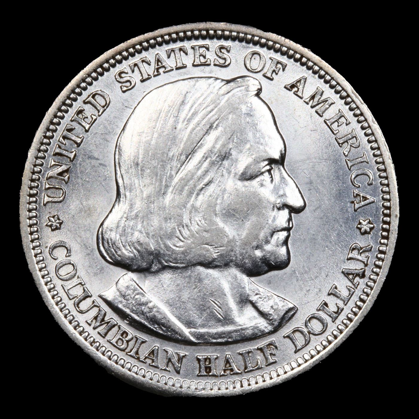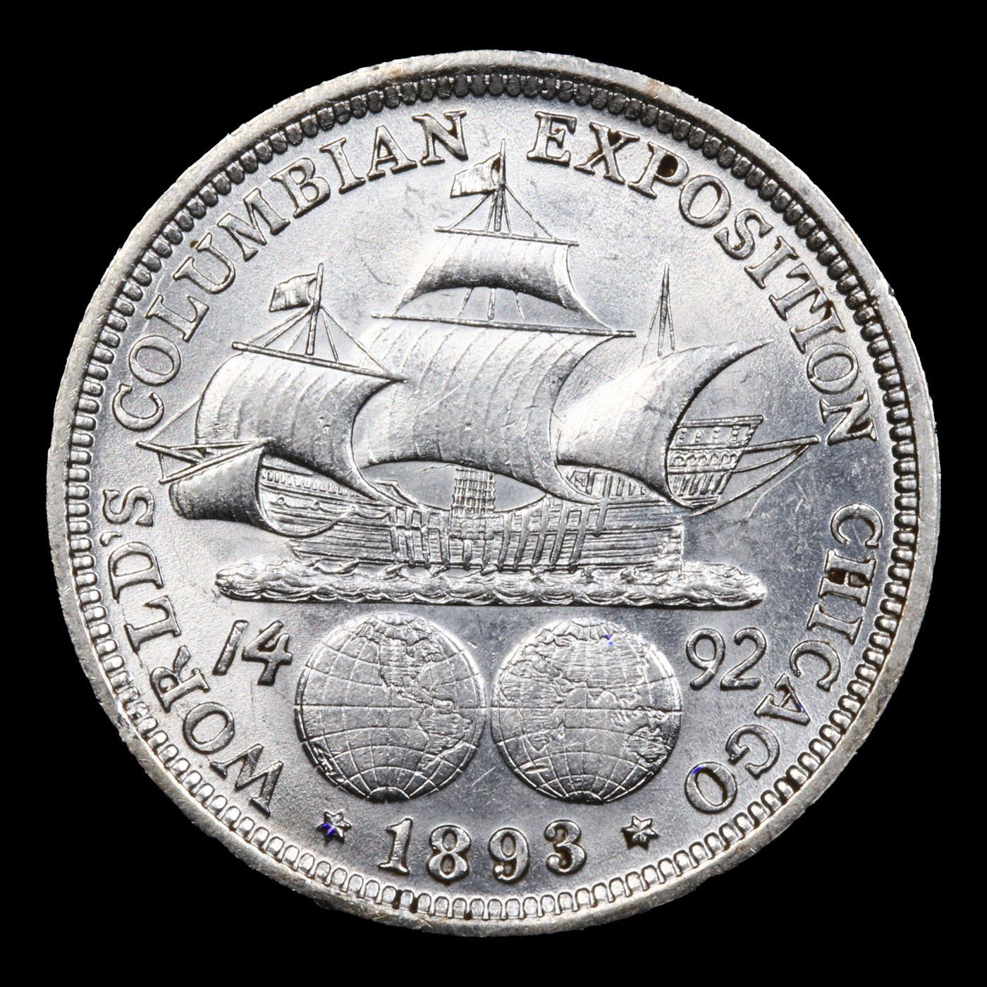 1893 Columbian Old Commem Half Dollar 50c Grades GEM+ Unc. The Columbus Half Dollar along with the Isabella Quarter were Minted in Honor of the 400th Anniversary of Columbus' Voyage to the New World. It was First Distributed at the Worlds Fair Honoring that Voyage. When examining a Columbian Exposition Half Dollar, the First Points to Show Wear are Columbus’ Eyebrow, Cheek and the Hair Behind his Forehead and Jaw. On the Reverse, Check the Foresail and Sainsail, as well as the Right Side of the Eastern Hemisphere.