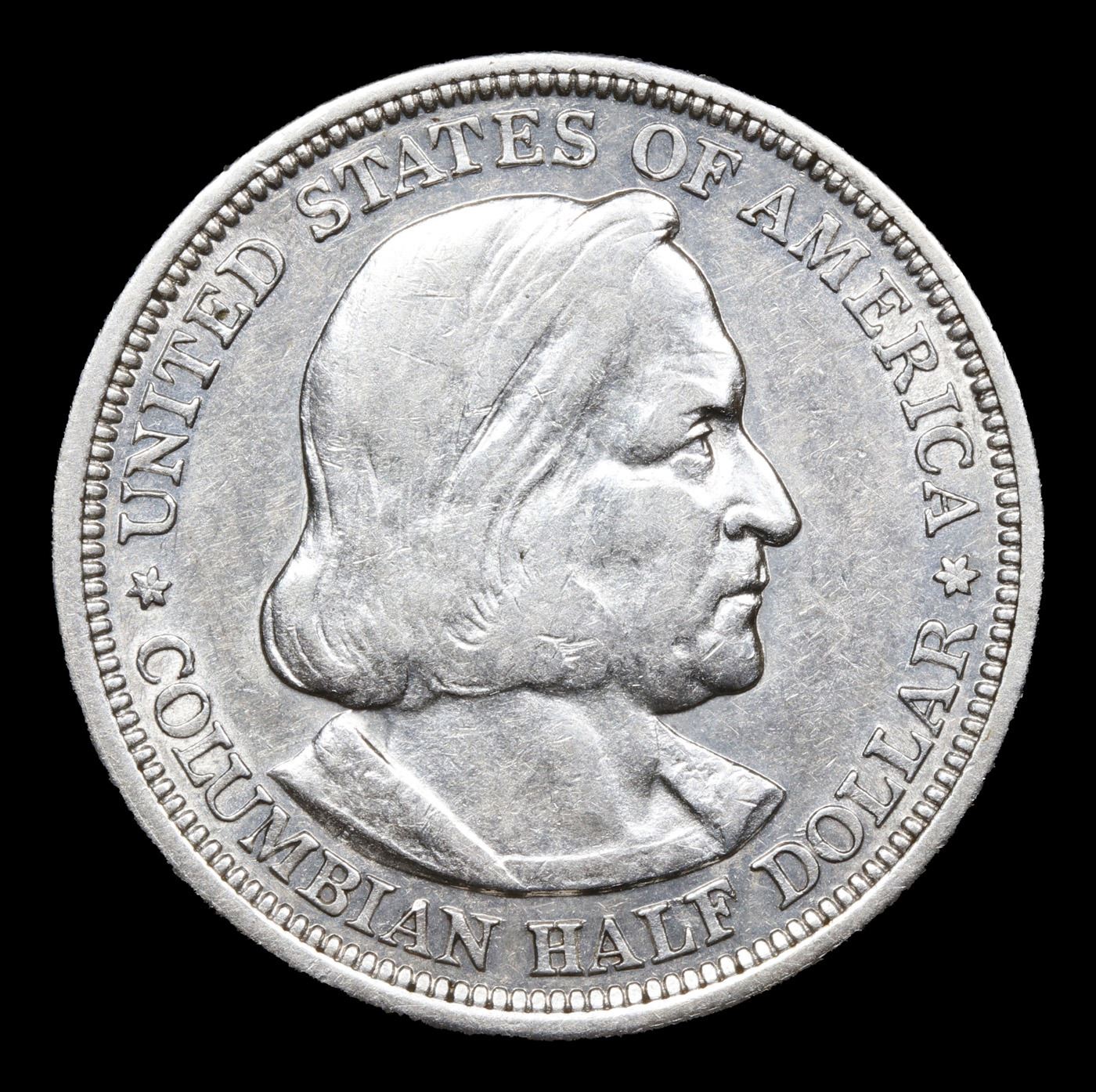 1893 Columbian Old Commem Half Dollar 50c Grades Select AU. The Columbus Half Dollar along with the Isabella Quarter were Minted in Honor of the 400th Anniversary of Columbus' Voyage to the New World. It was First Distributed at the Worlds Fair Honoring that Voyage. When examining a Columbian Exposition Half Dollar, the First Points to Show Wear are Columbus’ Eyebrow, Cheek and the Hair Behind his Forehead and Jaw. On the Reverse, Check the Foresail and Sainsail, as well as the Right Side of the Eastern Hemisphere.