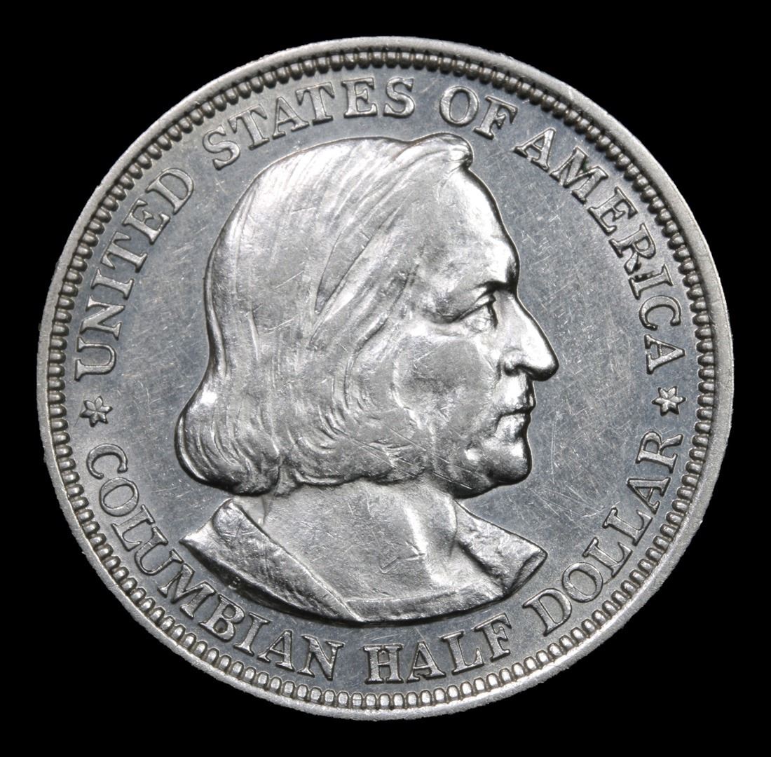 1893 Columbian . . Old Commem Half Dollar 50c Grades Select Unc+ PL. The Columbus Half Dollar along with the Isabella Quarter were Minted in Honor of the 400th Anniversary of Columbus' Voyage to the New World. It was First Distributed at the Worlds Fair Honoring that Voyage. When examining a Columbian Exposition Half Dollar, the First Points to Show Wear are Columbus’ Eyebrow, Cheek and the Hair Behind his Forehead and Jaw. On the Reverse, Check the Foresail and Sainsail, as well as the Right Side of the Eastern Hemisphere. A Corey's Pick, Bid to Win, Don't let it get Away, you might not find its equal Coin