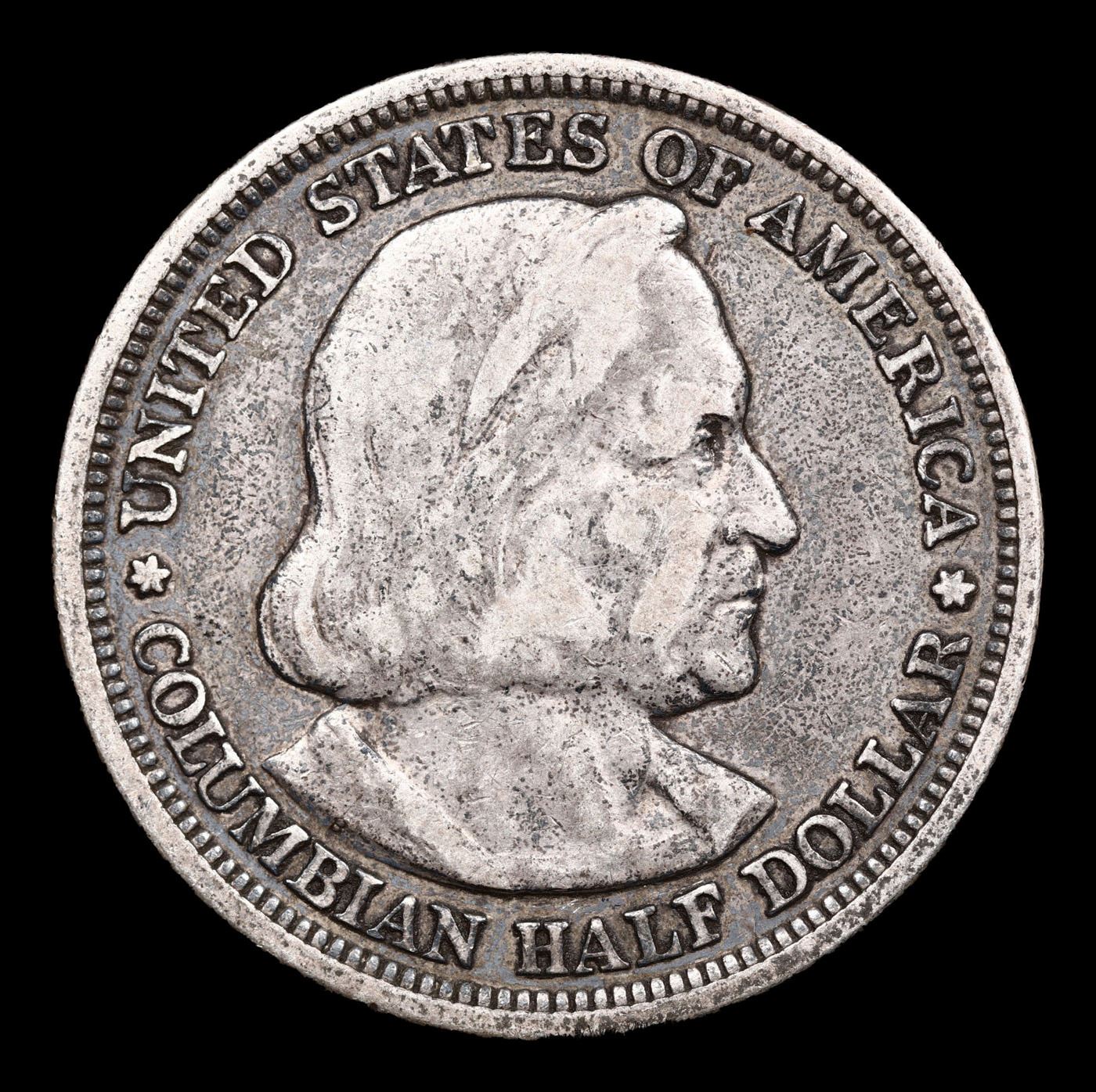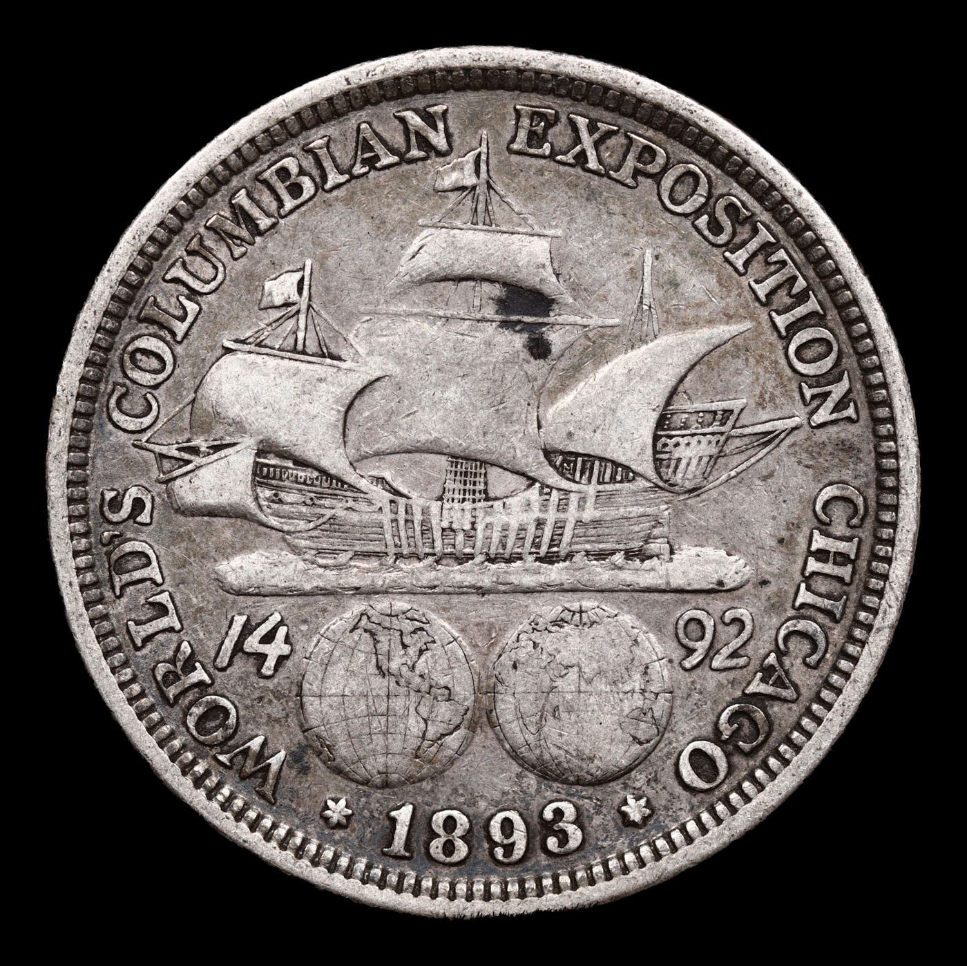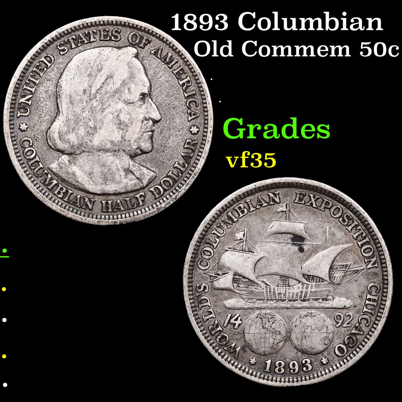 1893 Columbian Old Commem Half Dollar 50c Grades vf++. The Columbus Half Dollar along with the Isabella Quarter were Minted in Honor of the 400th Anniversary of Columbus' Voyage to the New World. It was First Distributed at the Worlds Fair Honoring that Voyage. When examining a Columbian Exposition Half Dollar, the First Points to Show Wear are Columbus’ Eyebrow, Cheek and the Hair Behind his Forehead and Jaw. On the Reverse, Check the Foresail and Sainsail, as well as the Right Side of the Eastern Hemisphere.