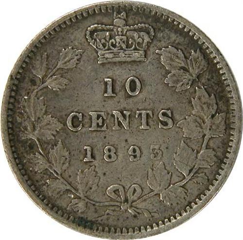 Canada Ten Cents 1893 Flat Top 3, Obverse 6, VF. Light golden gray toning with medium rim accents