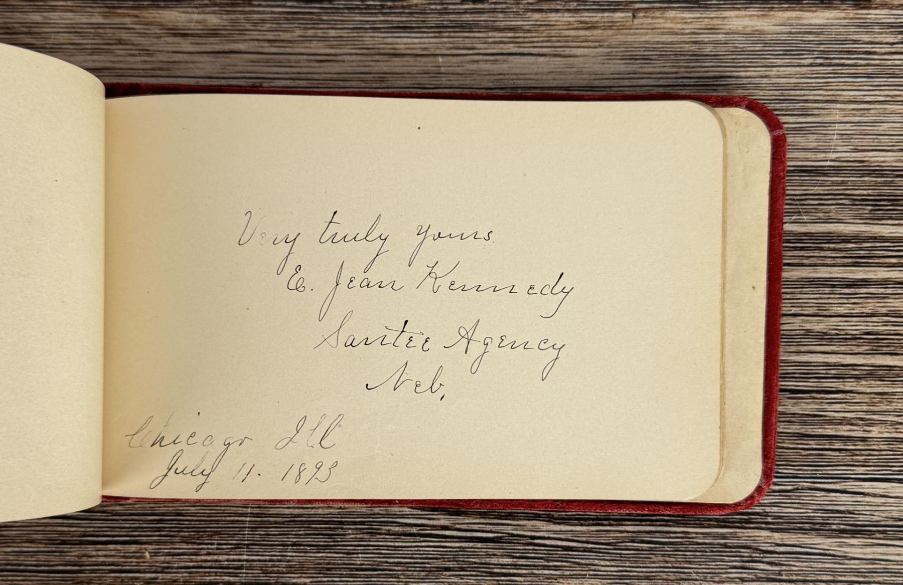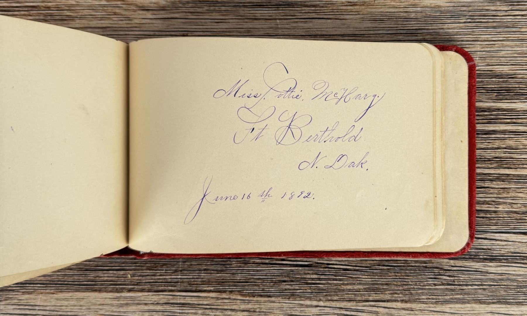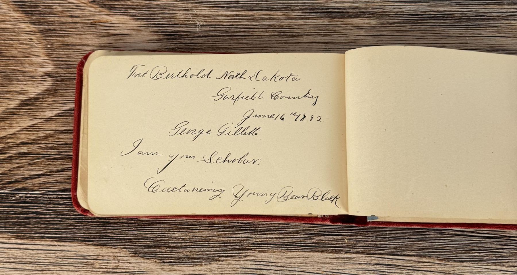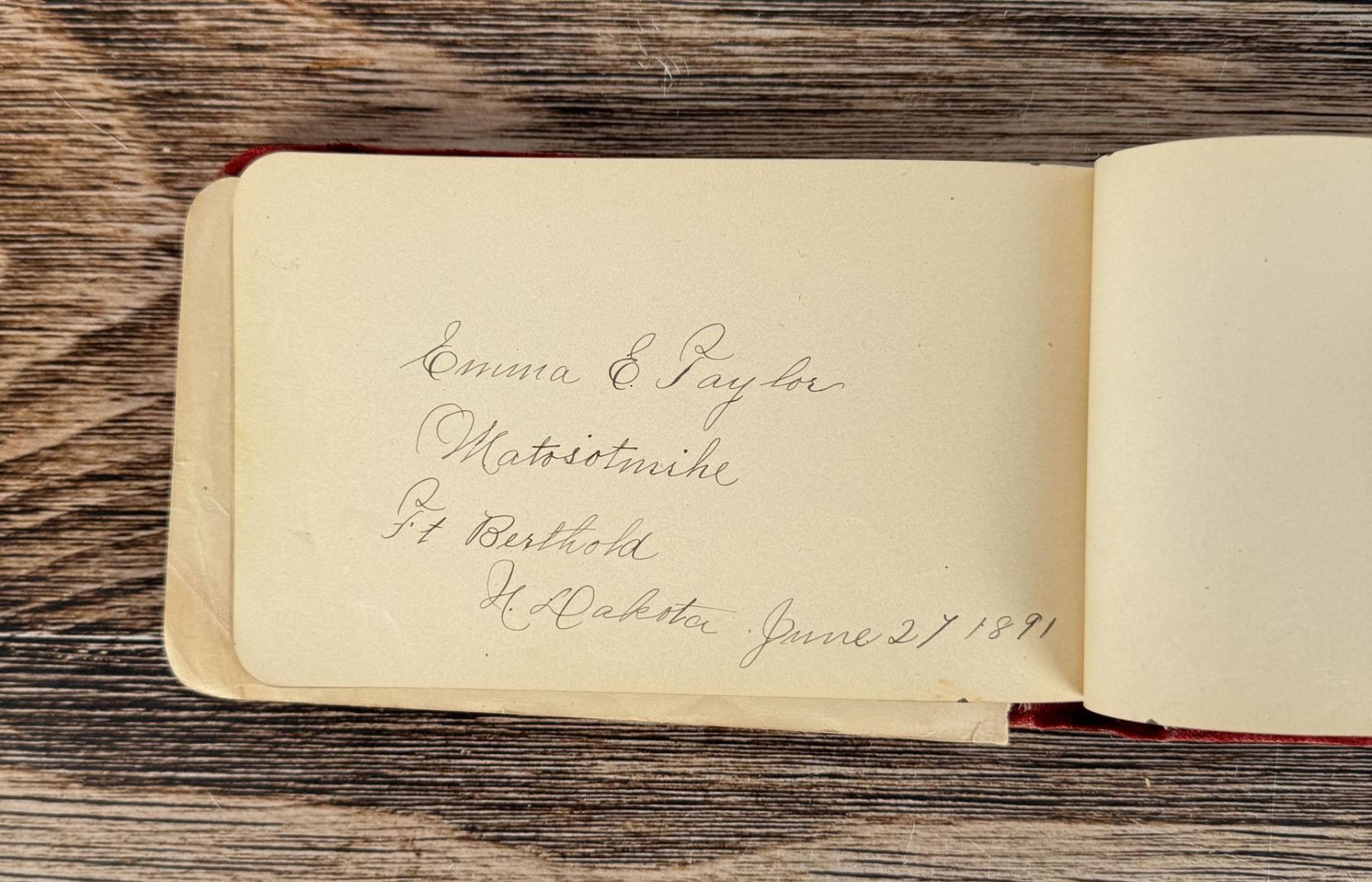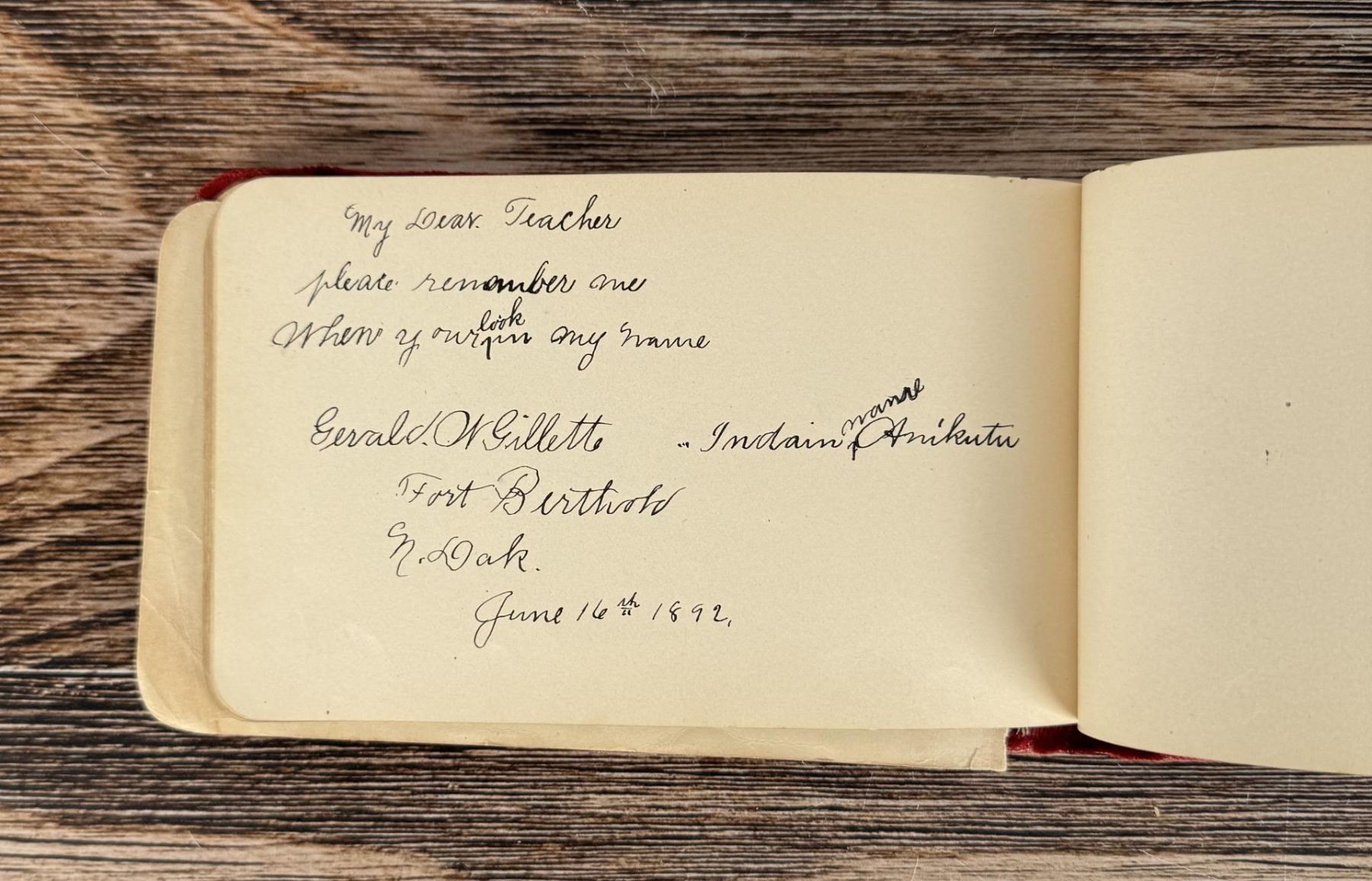 Notable Names include Henrietta B. Williams a Chinese Born Missionary that was a teacher at the Santee Indian Agency, Hannah Hall Fort Berthold (Daughter of Reverend C.L. Hall Indian Agency), Roanna F. Challis (Teacher at Fort Berthold), Katie Eagle (Fort Berthold Student), Frank and Mina Tobie (Husband and Wife Teachers at Fort Berthold), Otta Wolf (Student at Fort Berthold), Running Face (aka Howard Mandan) the son of Red Buffalo Cow, Peter Standish (Student at Forth Berthold), Harriet B. Ilsley (Teacher at Fort Berthold), Miss E. Jean Kennedy (Matron Santee Agency), Esther Briggs (Student at Fort Berthold), Albert Gillette (Student at Fort Berthold), Thomas White (Student at Fort Berthold), Stella Rogers Howling Wolf (Student at Fort Berthold), Walter King (Student at Fort Berthold), Ernest Wilkinson (Student at Fort Berthold), Jesse Mason (Student at Fort Berthold), Nathan Gunn (Student at Fort Berthold), Grace Montclair (Student at Fort Berthold), Gerald Gillette (Student at Fort Berthold). Provenance: Aline Natalie Burgess Claremont Los Angeles, daughter of James Gregor Burgess builder of the Burgess Baptist Church Crow Agency Montana, through Decent.