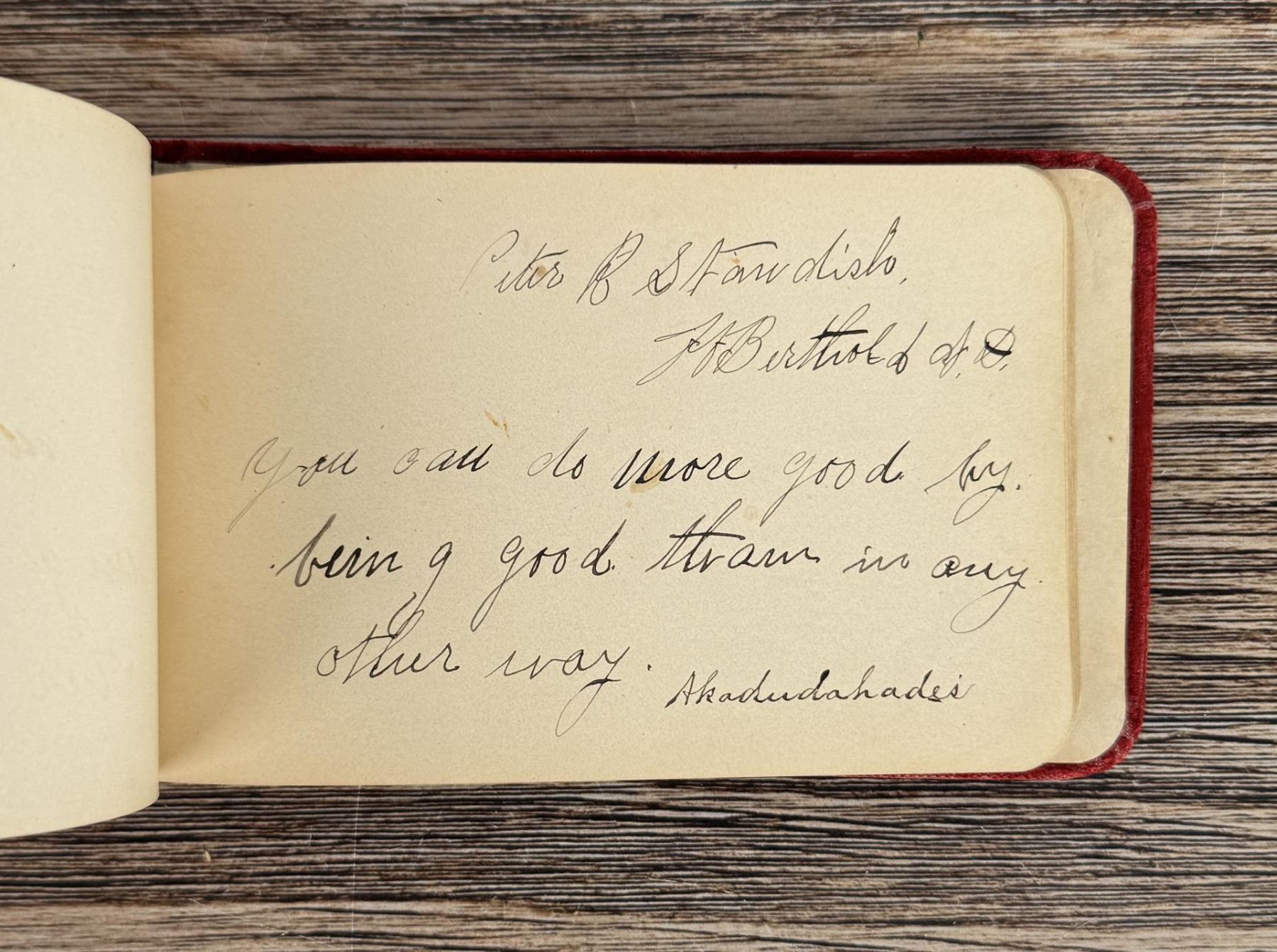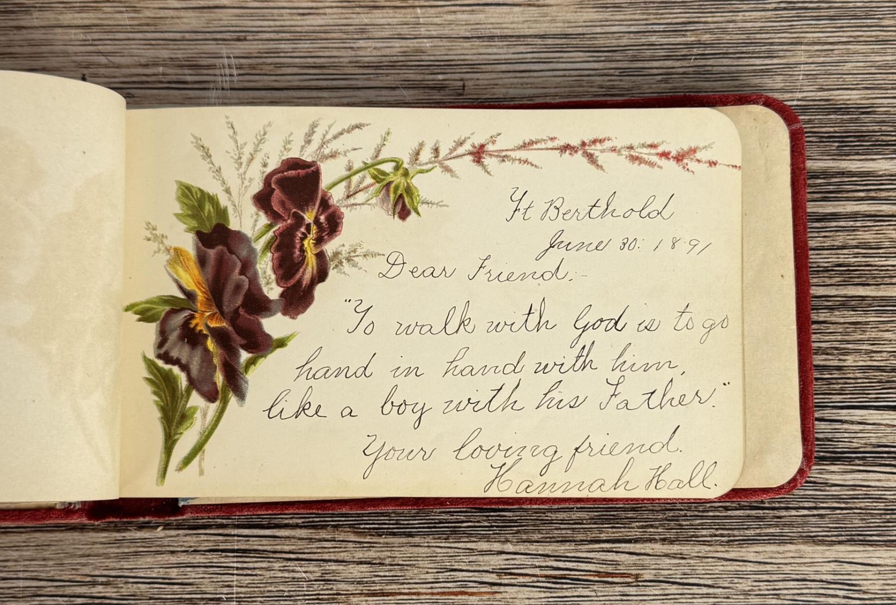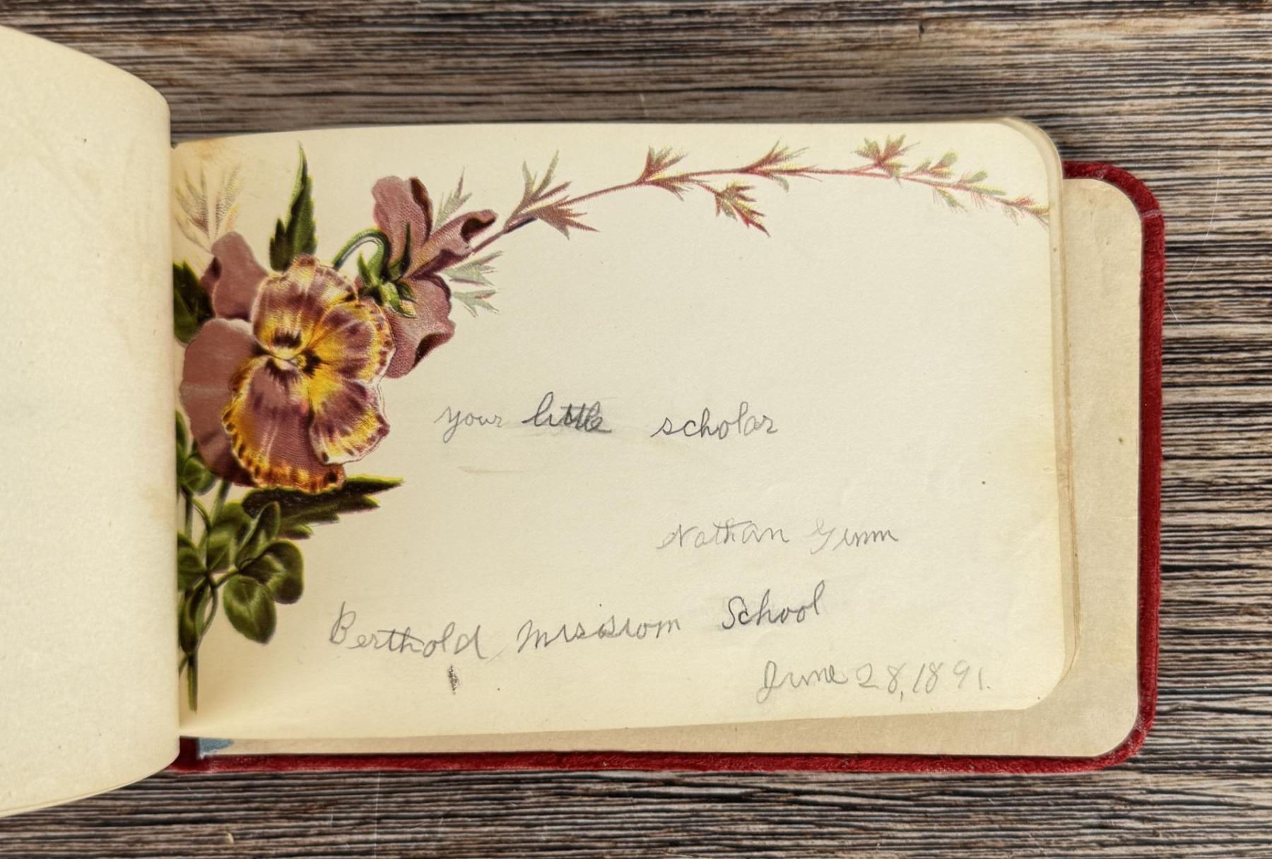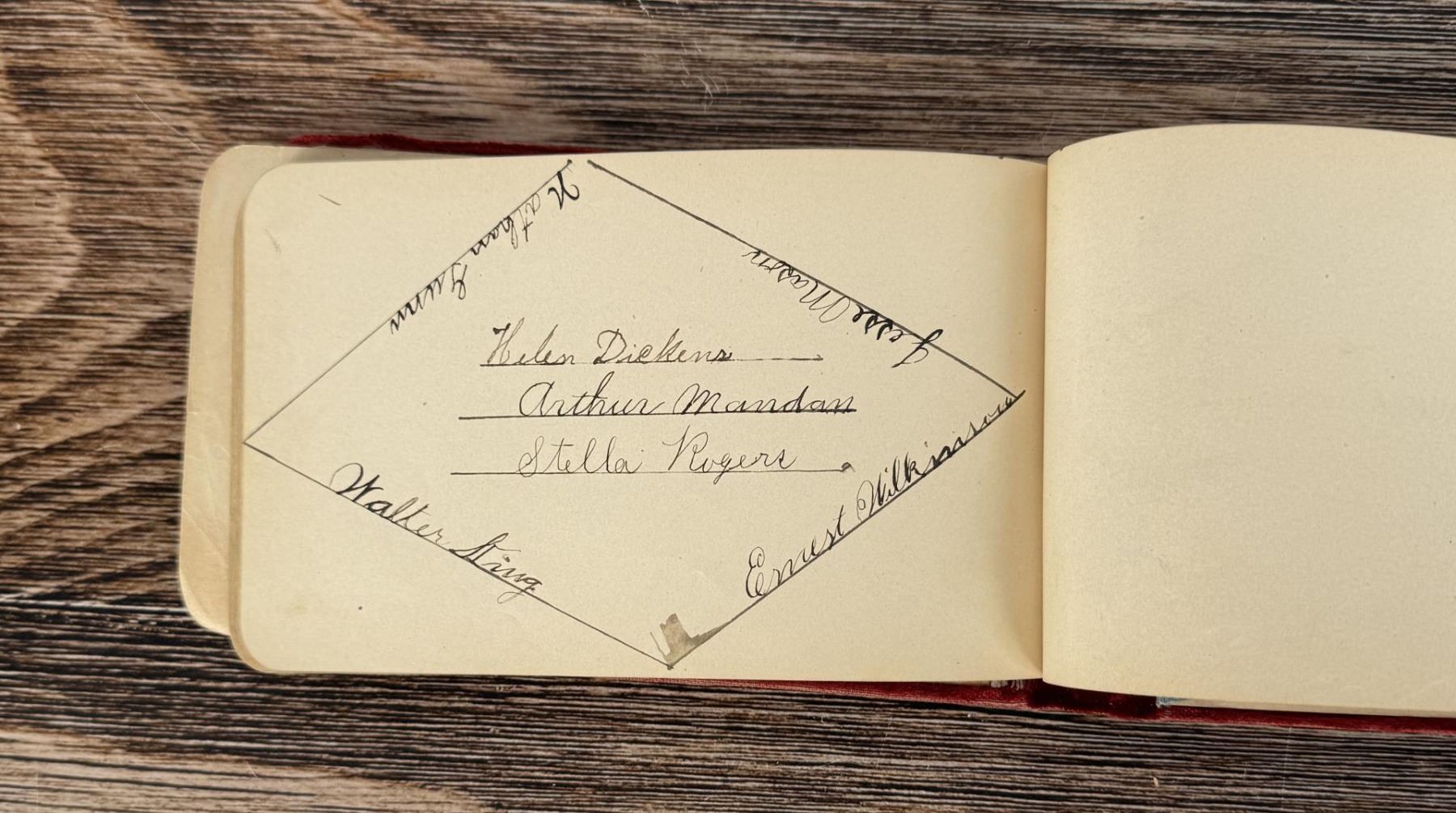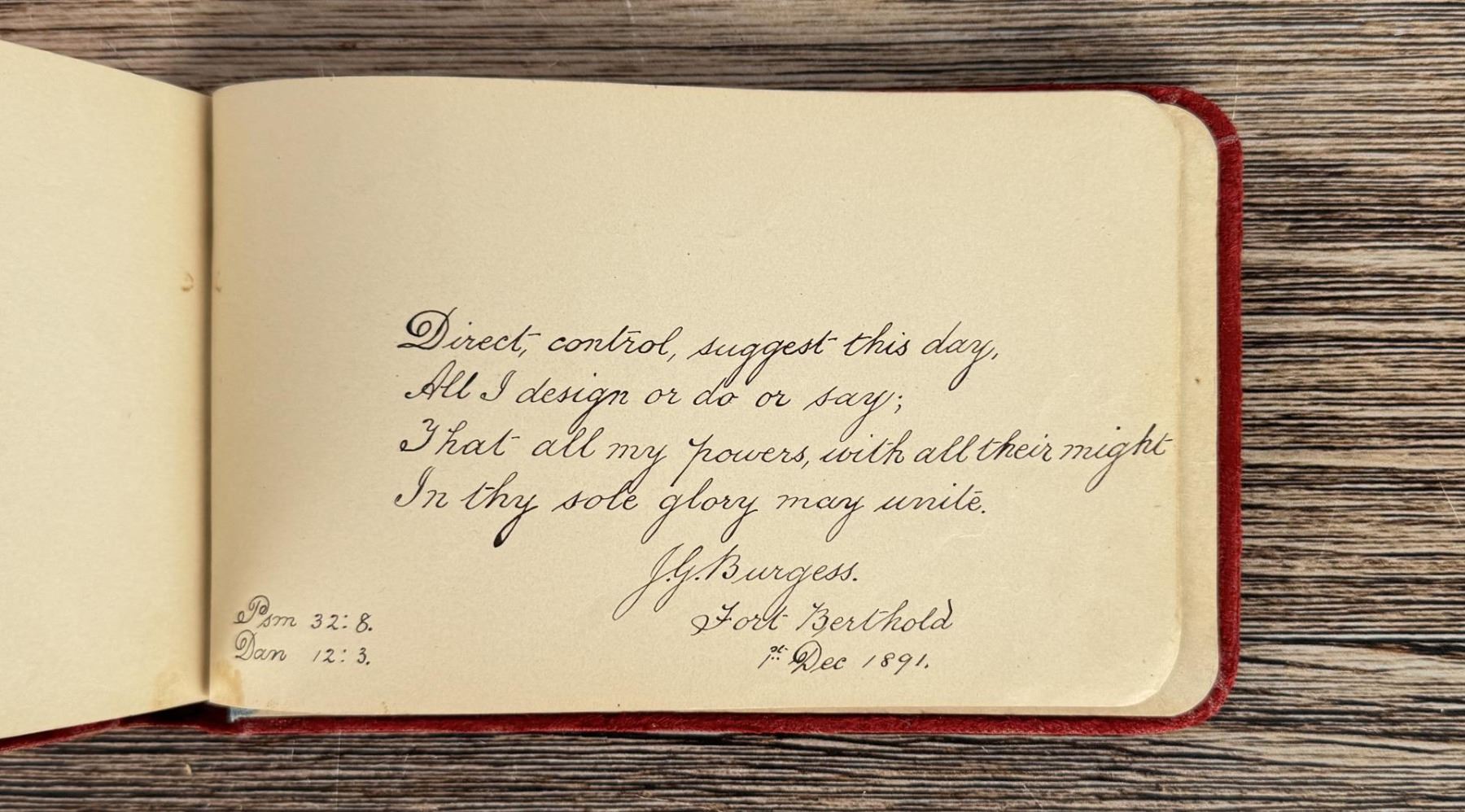 Notable Names include Henrietta B. Williams a Chinese Born Missionary that was a teacher at the Santee Indian Agency, Hannah Hall Fort Berthold (Daughter of Reverend C.L. Hall Indian Agency), Roanna F. Challis (Teacher at Fort Berthold), Katie Eagle (Fort Berthold Student), Frank and Mina Tobie (Husband and Wife Teachers at Fort Berthold), Otta Wolf (Student at Fort Berthold), Running Face (aka Howard Mandan) the son of Red Buffalo Cow, Peter Standish (Student at Forth Berthold), Harriet B. Ilsley (Teacher at Fort Berthold), Miss E. Jean Kennedy (Matron Santee Agency), Esther Briggs (Student at Fort Berthold), Albert Gillette (Student at Fort Berthold), Thomas White (Student at Fort Berthold), Stella Rogers Howling Wolf (Student at Fort Berthold), Walter King (Student at Fort Berthold), Ernest Wilkinson (Student at Fort Berthold), Jesse Mason (Student at Fort Berthold), Nathan Gunn (Student at Fort Berthold), Grace Montclair (Student at Fort Berthold), Gerald Gillette (Student at Fort Berthold). Provenance: Aline Natalie Burgess Claremont Los Angeles, daughter of James Gregor Burgess builder of the Burgess Baptist Church Crow Agency Montana, through Decent.