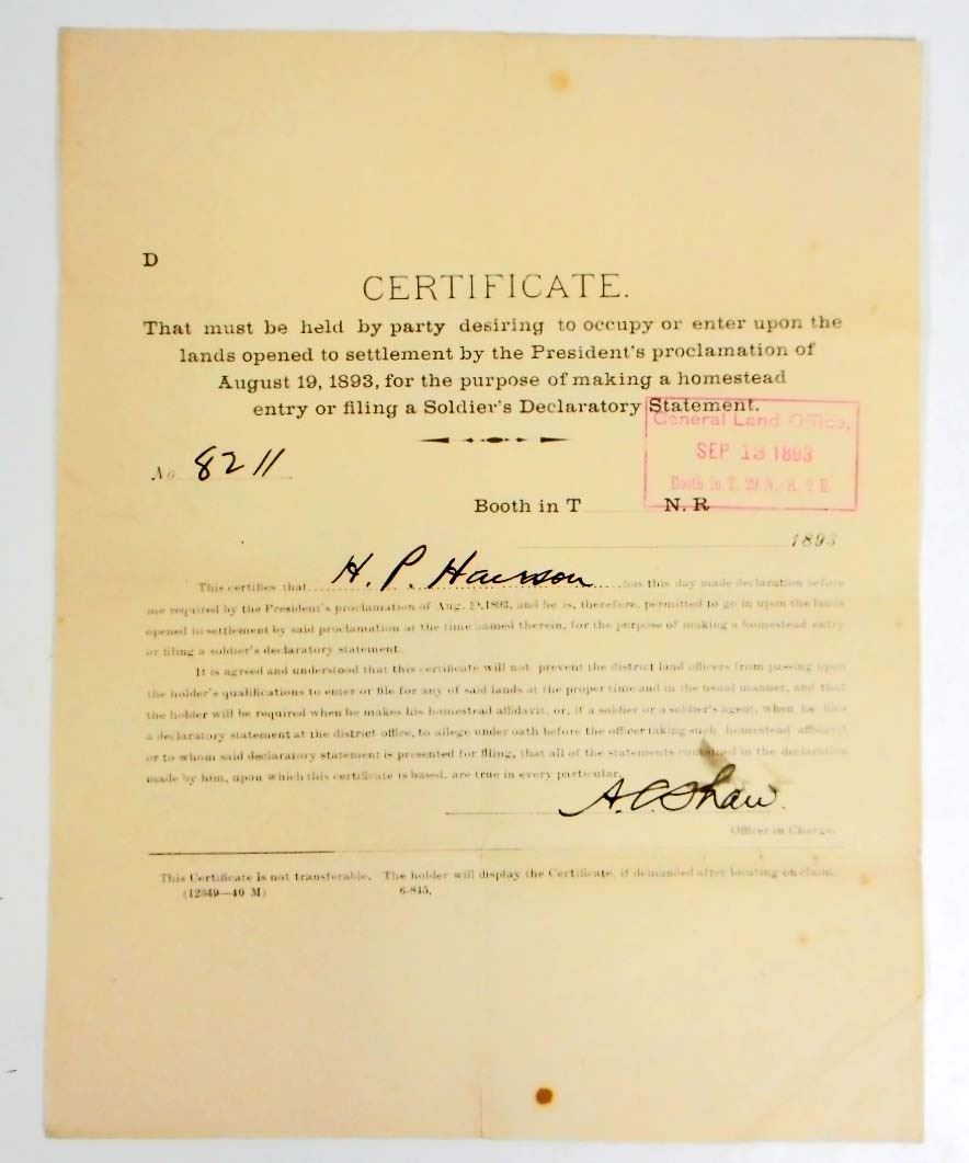 1893 GENERAL CERTIFICATE FOR SETTLEMENT