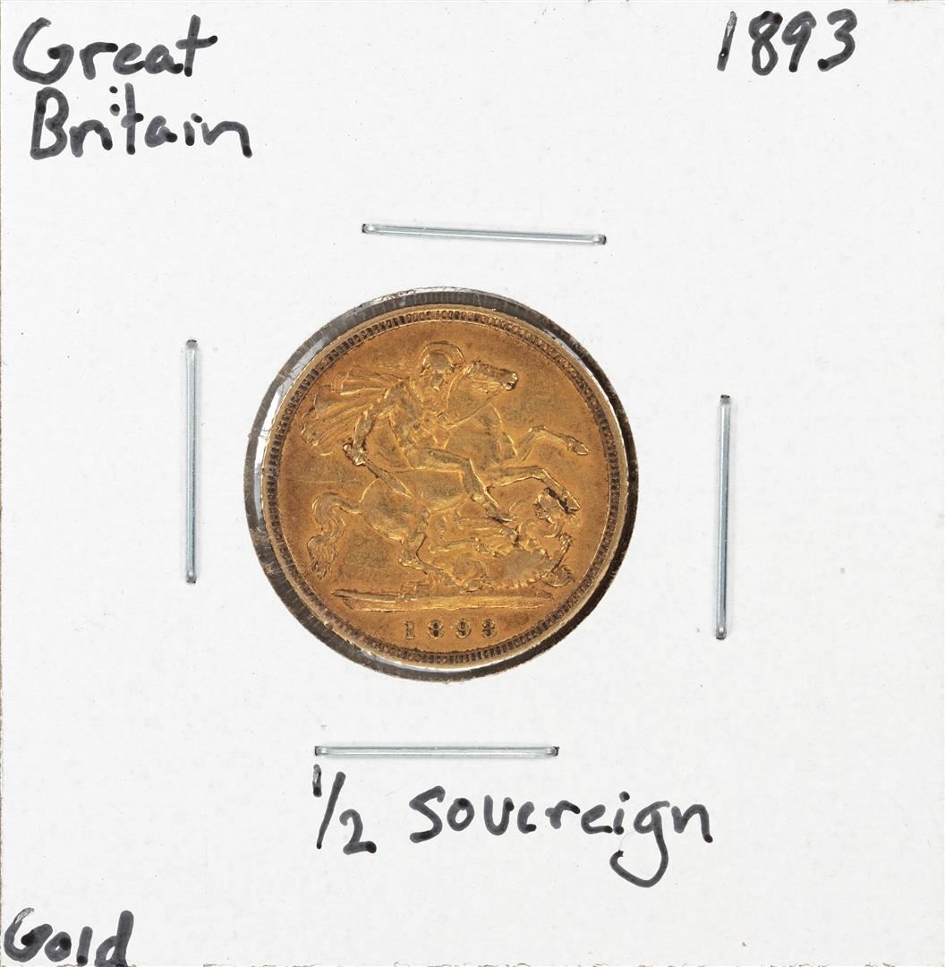 One 1893 Great Britain 1/2 Sovereign Gold Coin.