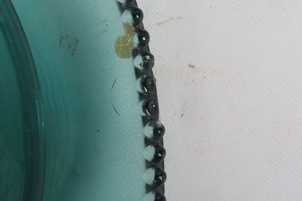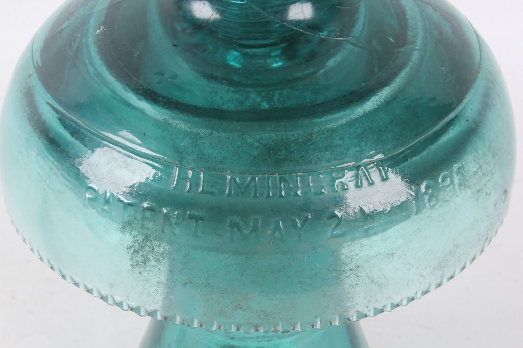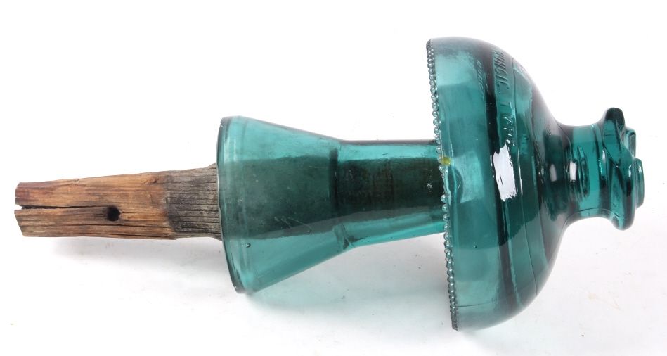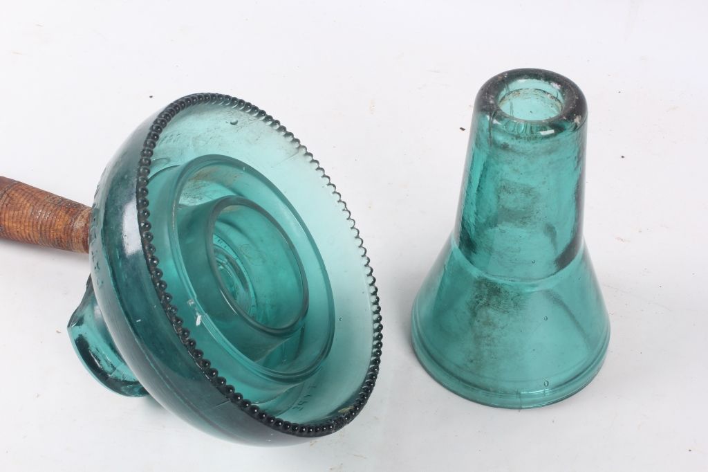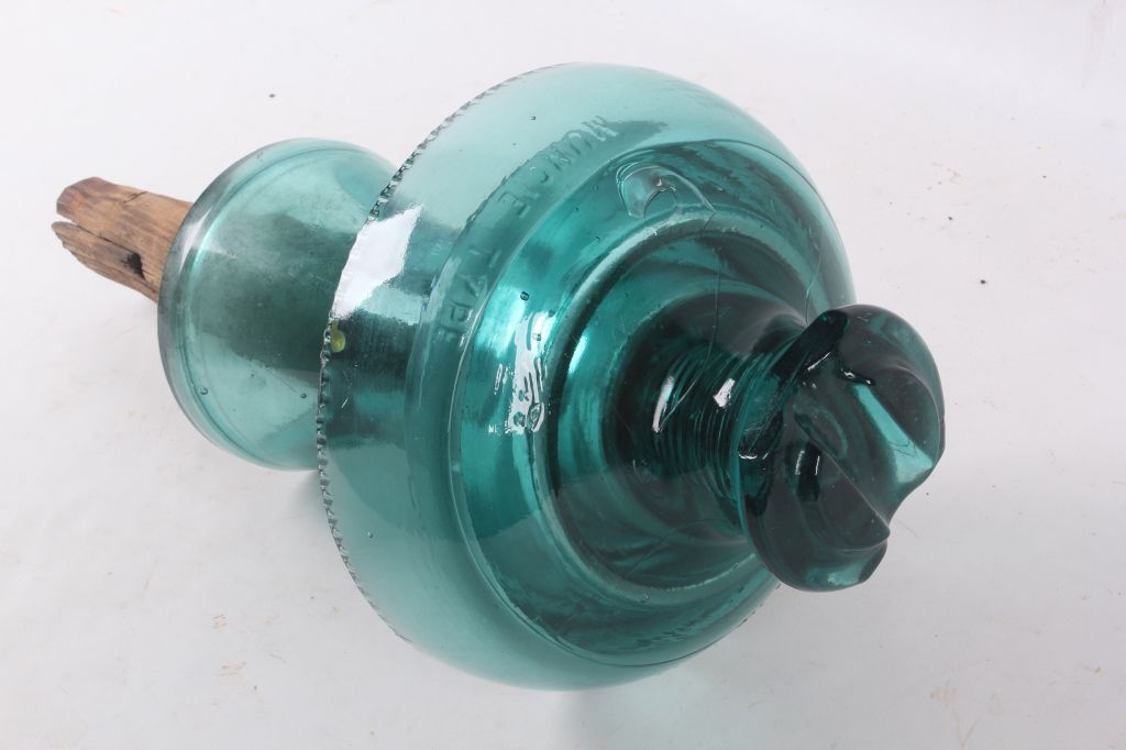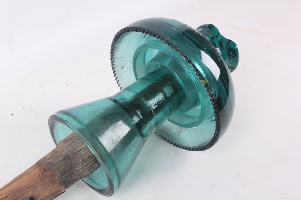 This is an early piece showing only a small 3/4" chip. This has a desired color and good condition with rarely seen wooden stake. Measures 19" tall