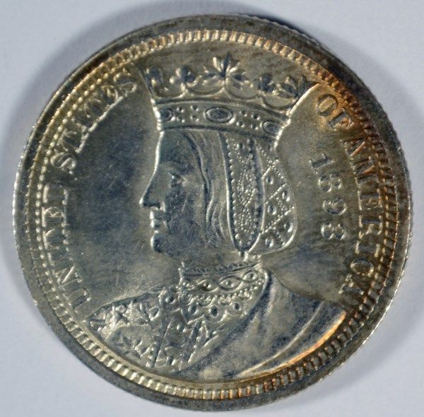 1893 ISABELLA QUARTER MS65 GEM ORIGINAL, BLAZING BLAST WHITE LUSTRE WITH A