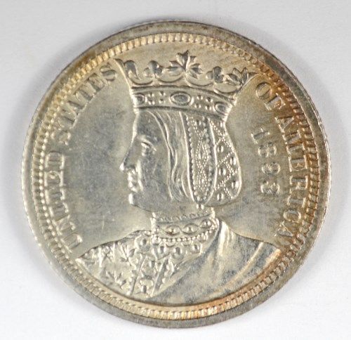 1893 ISABELLA QUARTER MS65 GEM ORIGINAL, BLAZING BLAST WHITE LUSTRE WITH A