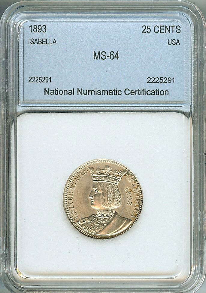 1893 ISABELLA SILVER 25 CENTS NNC MS64