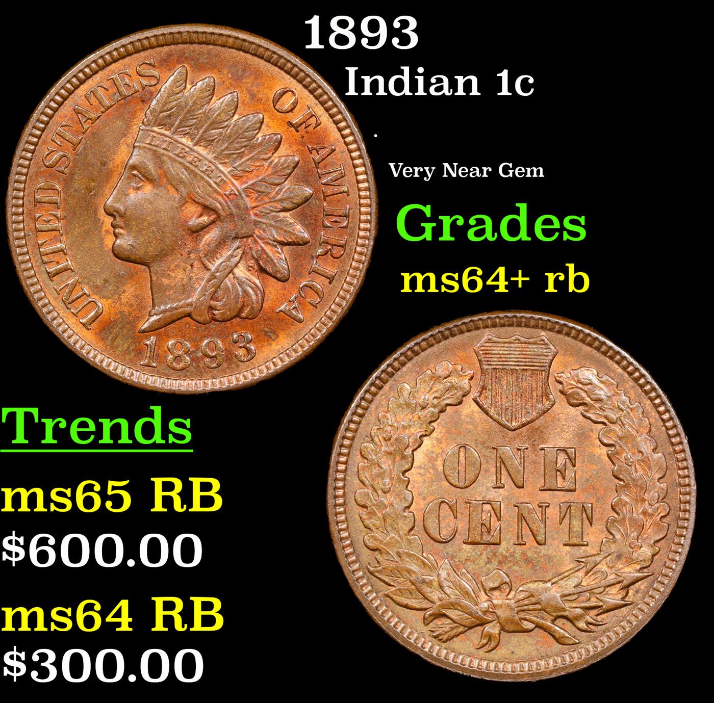 1893 Indian Cent 1c Grades Choice+ Unc RB.