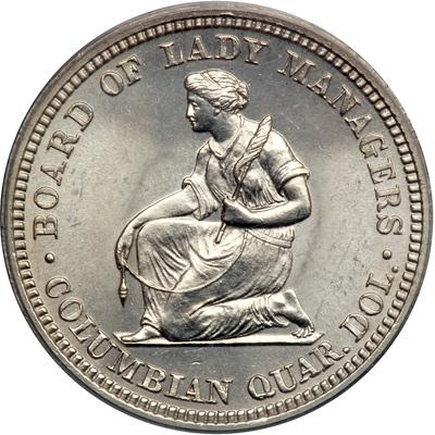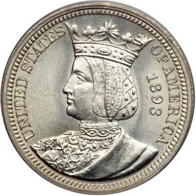 1893 Isabella Quarter Dollar. PCGS graded MS-64. Crisp white coin. A highly lustrous Isabella, in point of fact, and one that has nicely preserved surfaces. It is easy to see this piece was delivered a full, sharp blow by the dies (PCGS # 9220) .