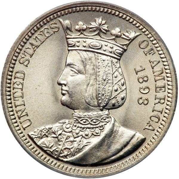 1893 Isabella Quarter Dollar. PCGS graded MS-64 PQ. A satiny brilliant white gem thus our Premium Quality designation (PCGS # 9220) .