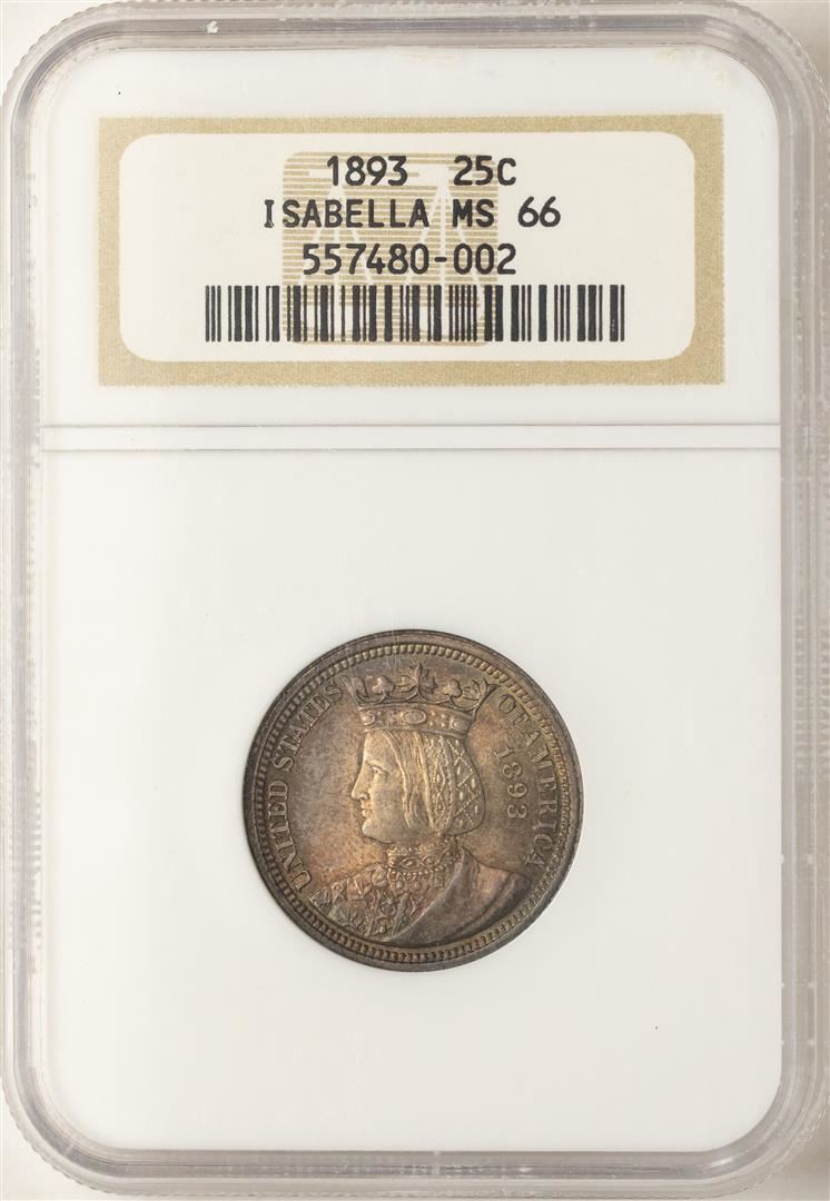 One 1893 Isabella Commemorative Quarter Coin NGC MS66 Amazing Toning. NGC Certified.