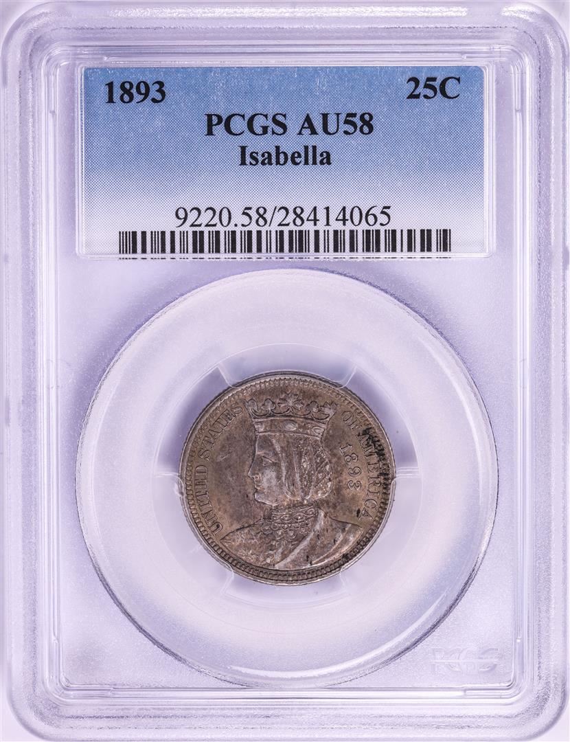 One 1893 Isabella Commemorative Quarter Coin PCGS AU58. PCGS Graded.