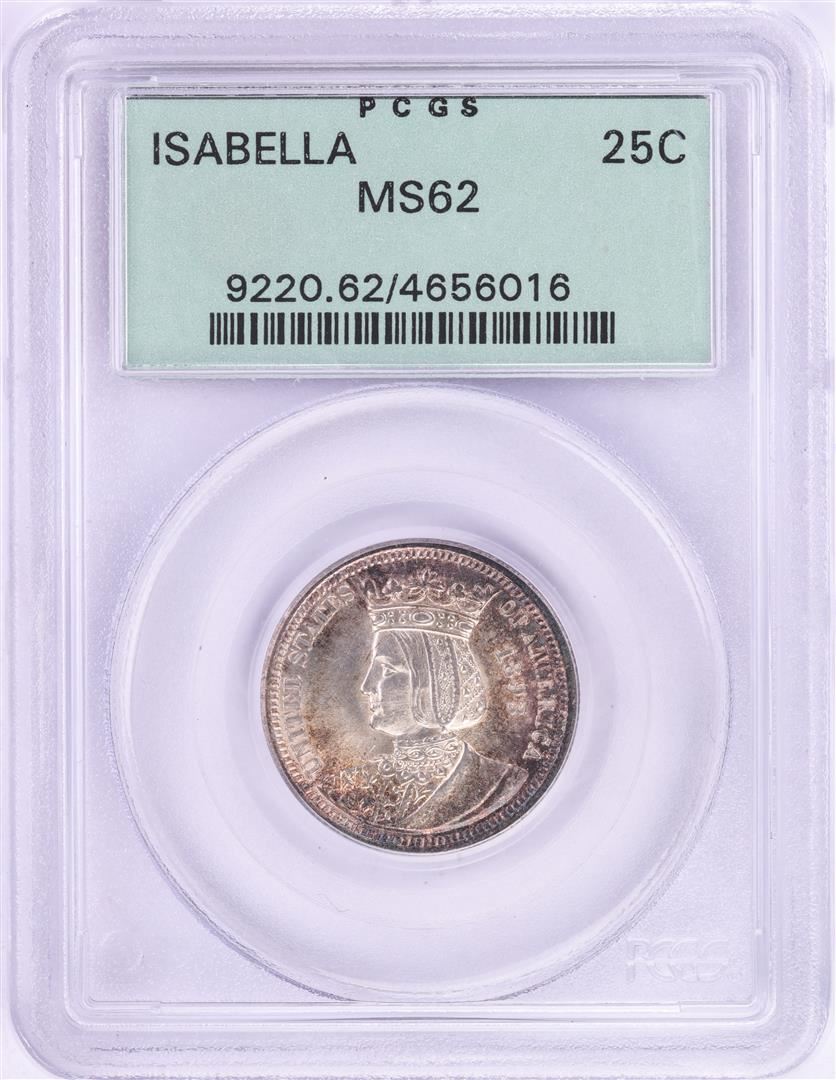 1893 Isabella Commemorative Quarter Coin PCGS MS62 Old Green Holder