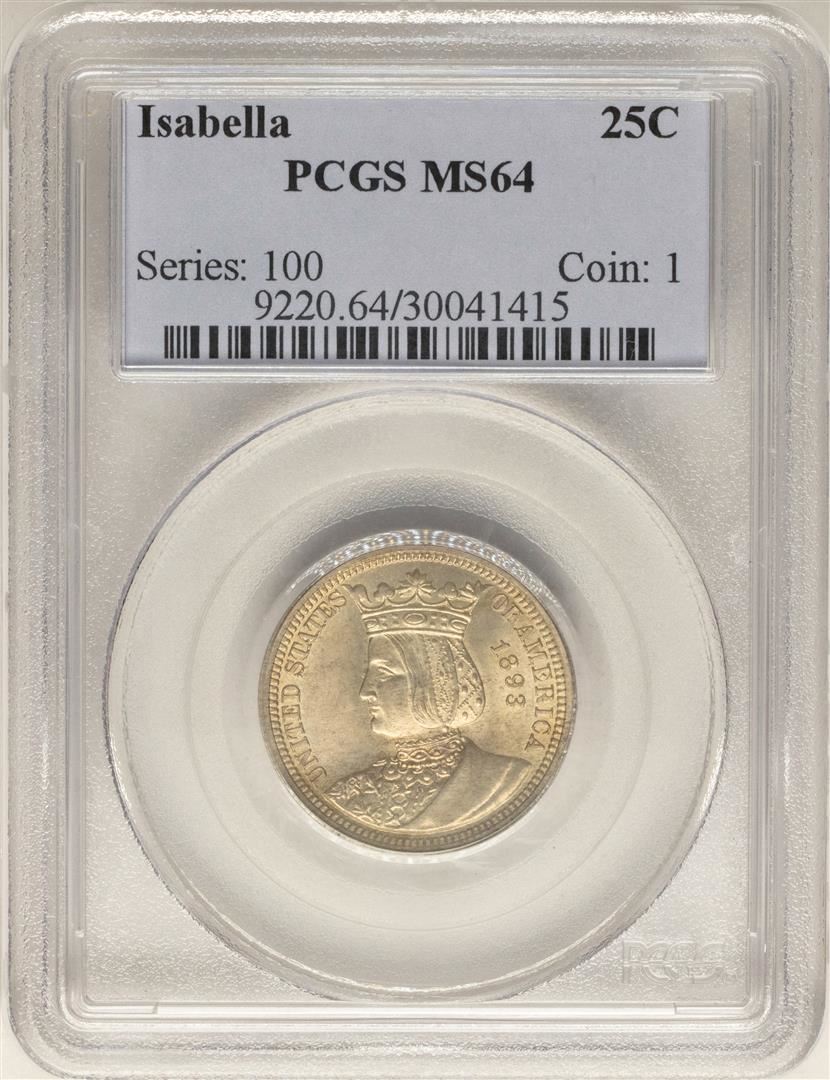 One 1893 Isabella Commemorative Quarter Coin PCGS MS64. PCGS Graded.