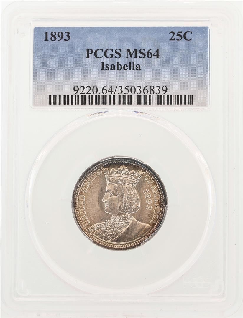 One 1893 Isabella Commemorative Quarter Coin PCGS MS64. PCGS Certified.