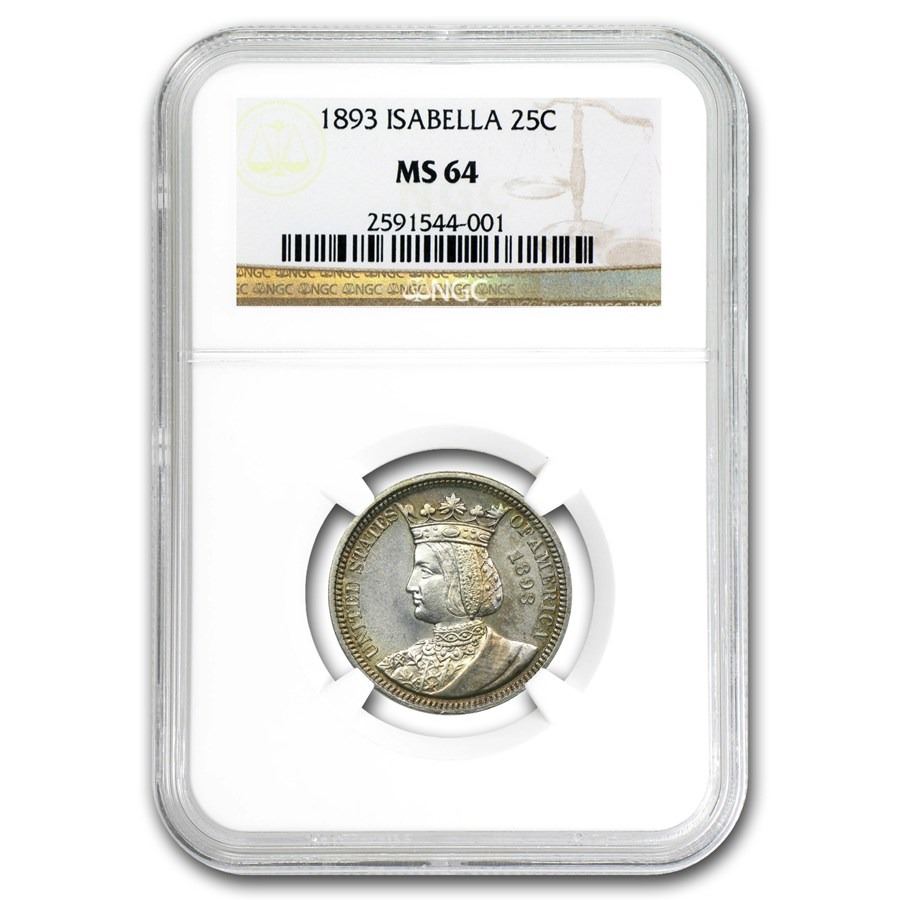 One 1893 Isabella Quarter Coin NGC MS64.