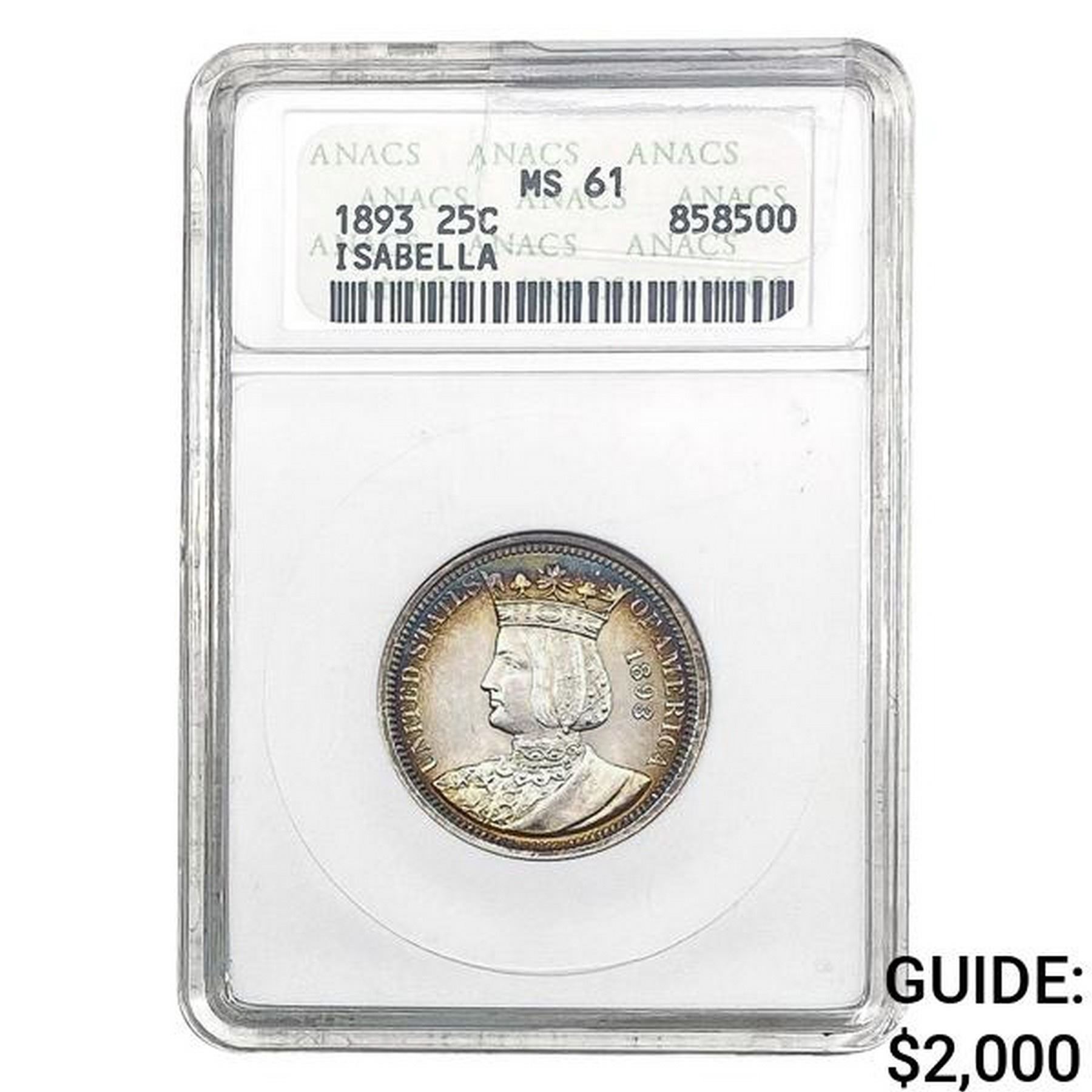 1893 Isabella Silver Quarter ANACS MS61