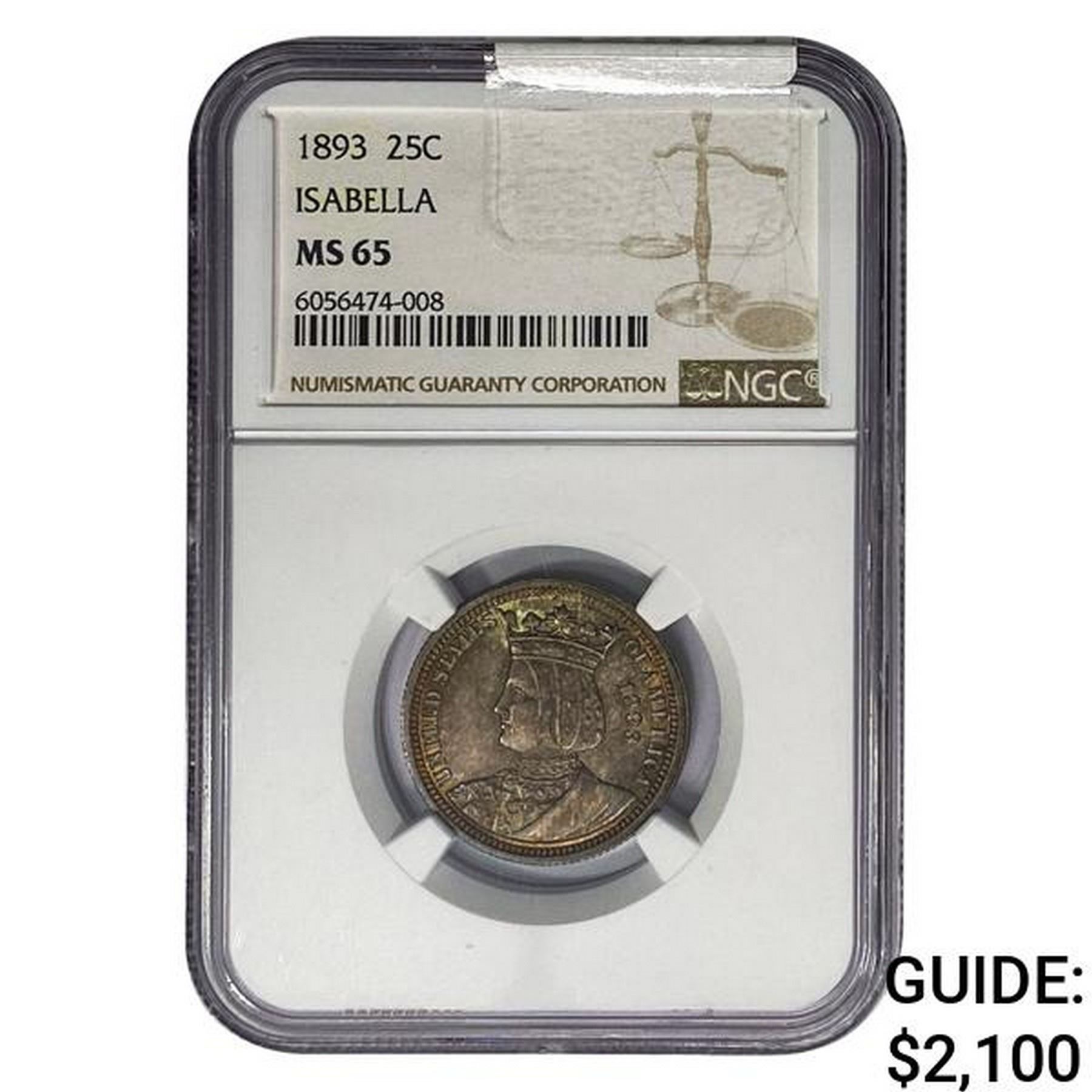 1893 Isabella Silver Quarter NGC MS65