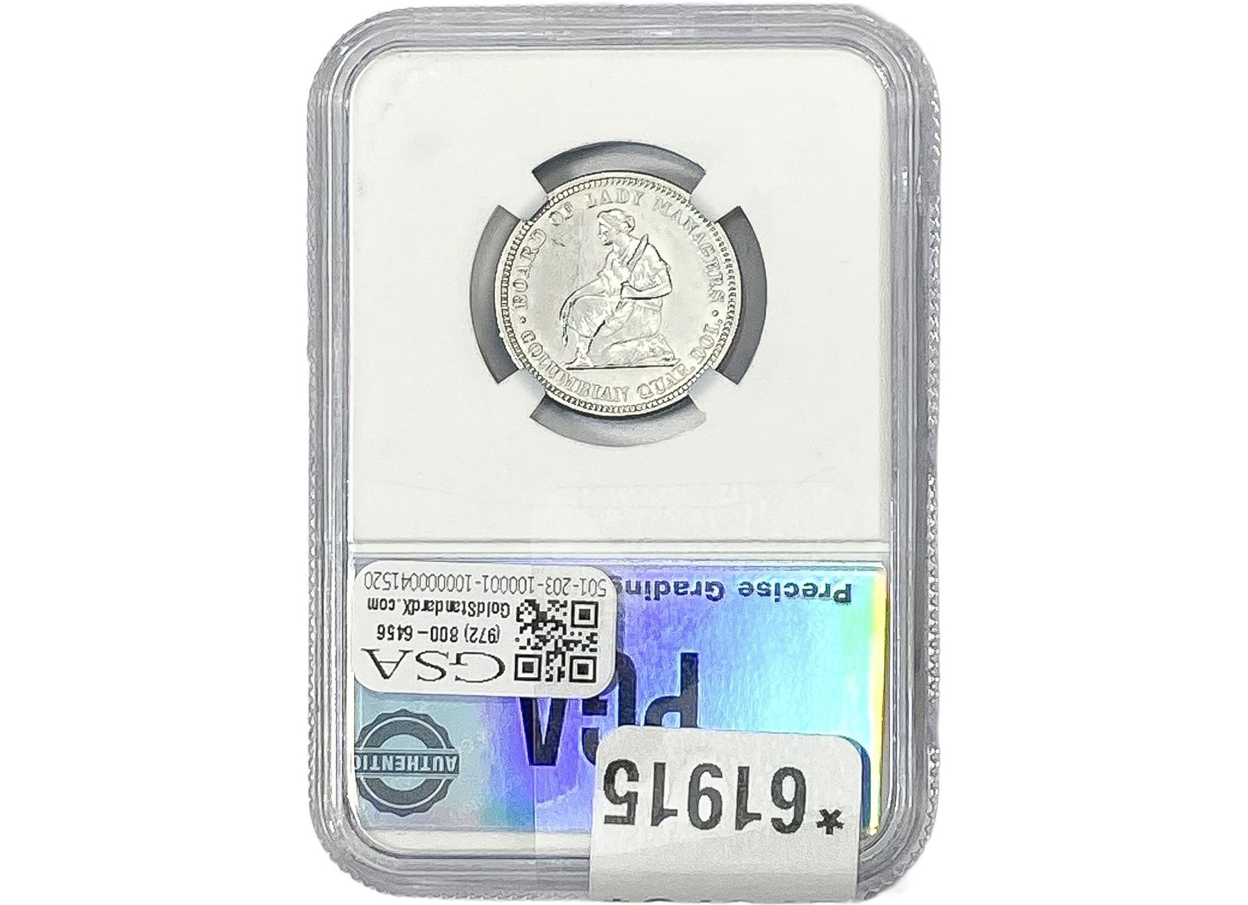 e. Coins sold referencing a third-party grading service are sold “AS IS” without any express or implied warranty, except for a guarantee by GSA that they are genuine. Removal or alteration of the holder, voids all of Bidder’s claims concerning that Product. Certain warranties may be available from the grading services and Bidders are referred to them for further details: Numismatic Guaranty Corporation (NGC), PO Box 4776, Sarasota, FL 34230, www.ngccoin.com/services/writtenguarantee.asp; Professional Coin Grading Services (PCGS), PO Box 9458, Newport Beach, CA 92658, www.pcgs.com/guarantee.html; ANACS, 6555 S. Kenton St., Ste. 303, Englewood, CO 80111; and Independent Coin Grading Co. (ICG), 7901 East Bellview, Ave., Suite 50, Englewood, CO 80111.