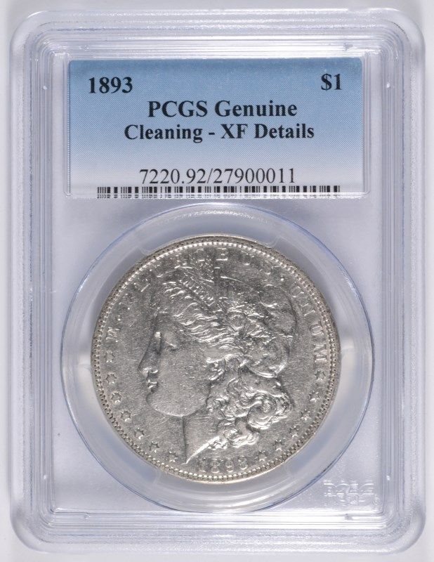 1893 MORGAN SILVER DOLLAR, PCGS XF ( cleaned ) NICE!