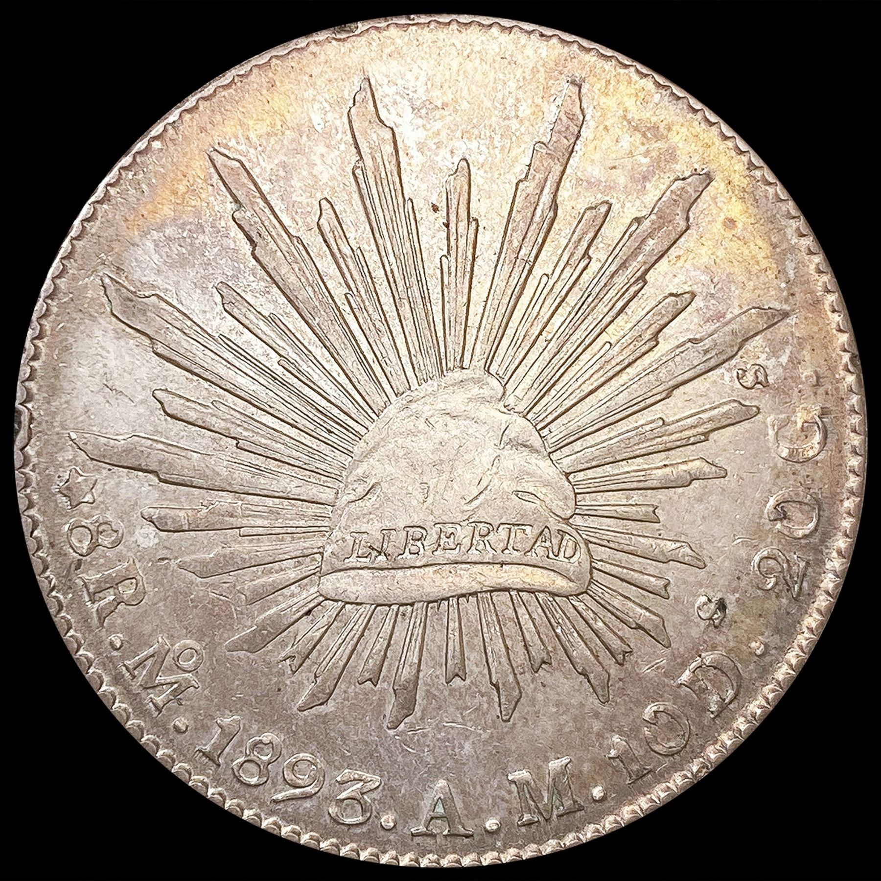 1893 Mexico Silver 8 Reales ABOUT UNCIRCULATED