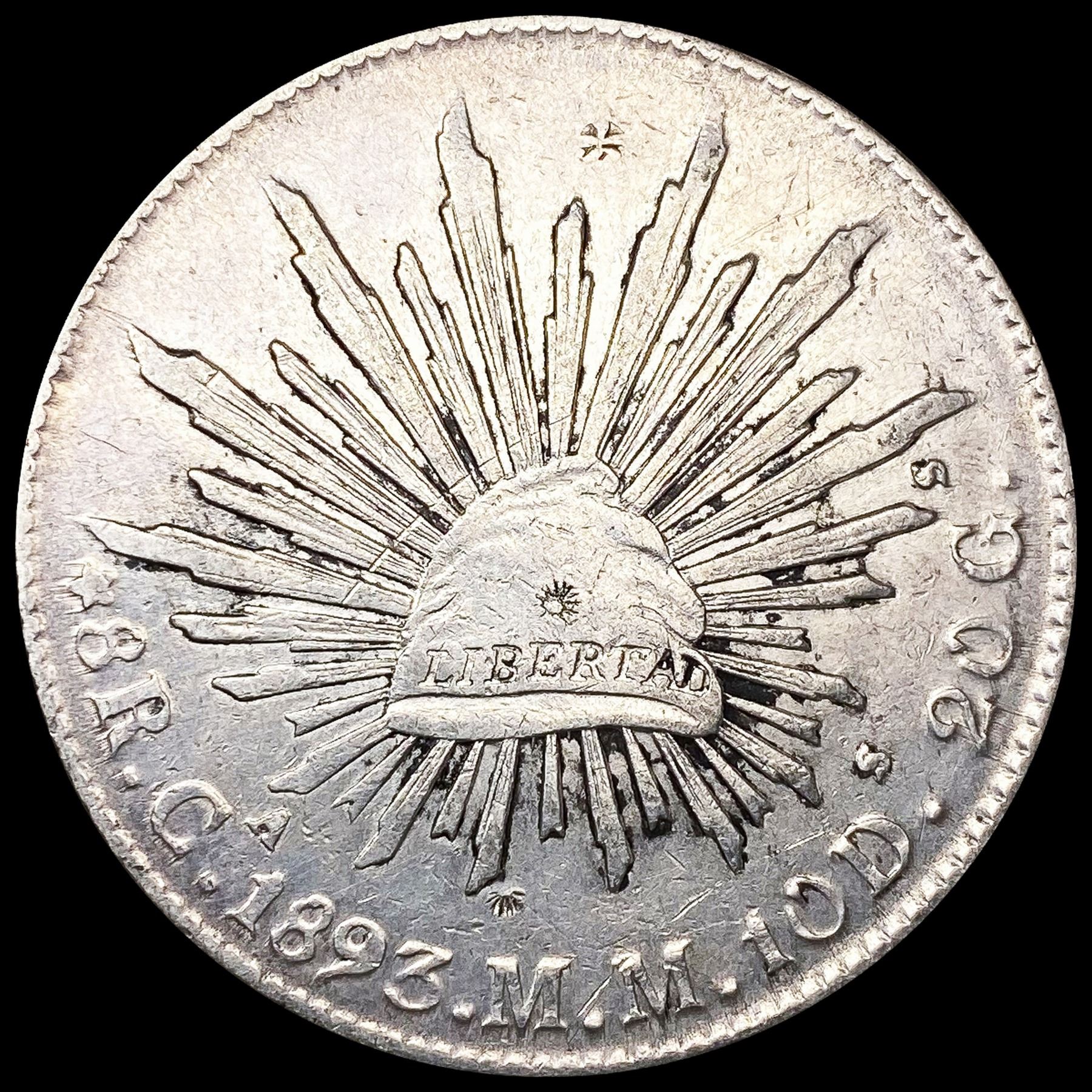 1893 Mexico Silver 8 Reales ABOUT UNCIRCULATED
