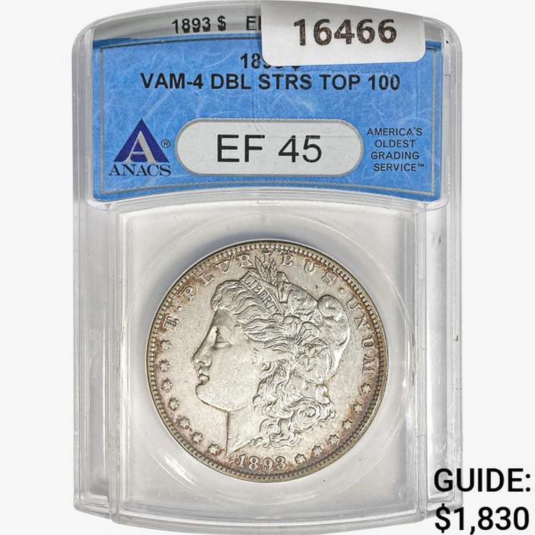 1893 Morgan Silver Dollar ANACS EF45 VAM-4 DBL STR