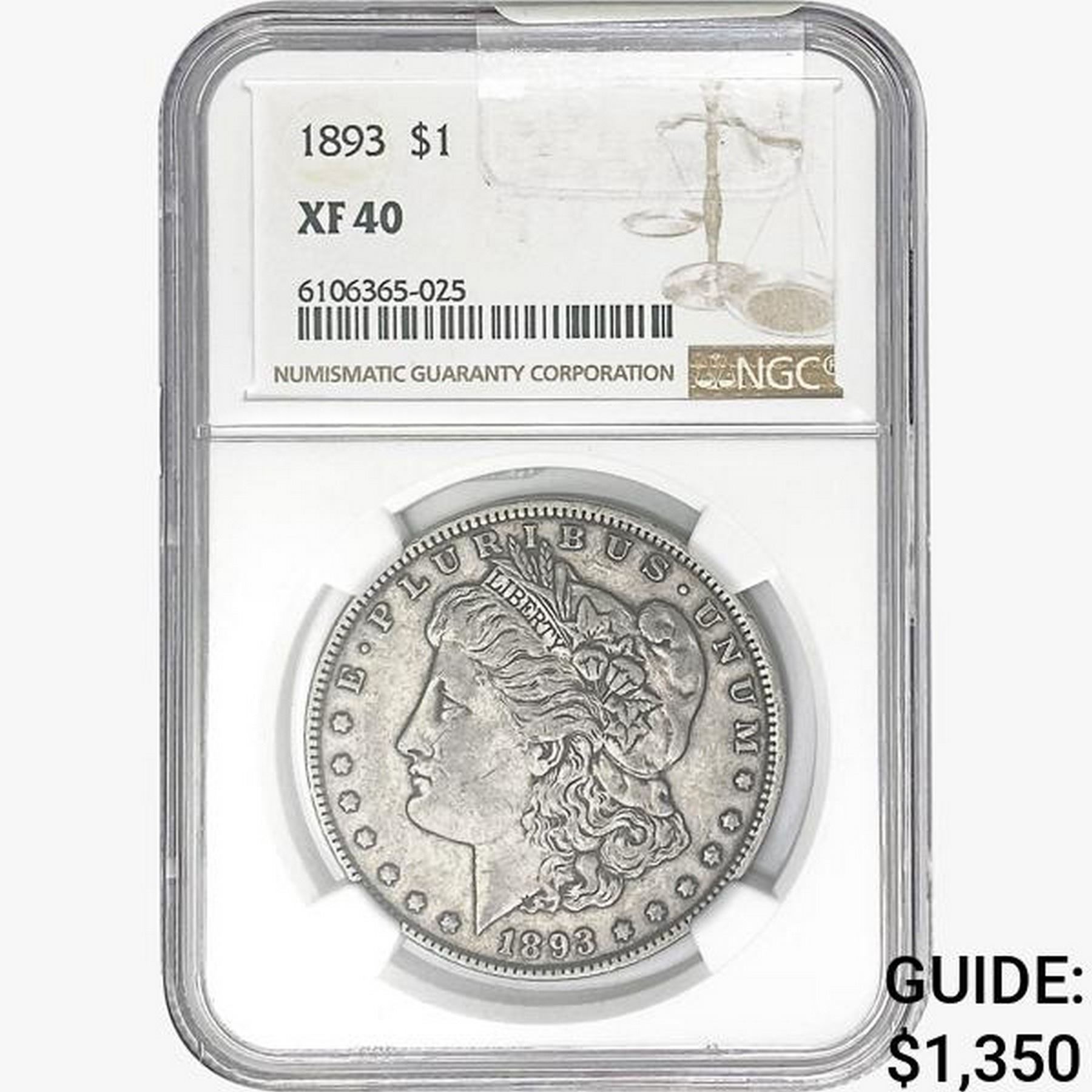 1893 Morgan Silver Dollar NGC XF40