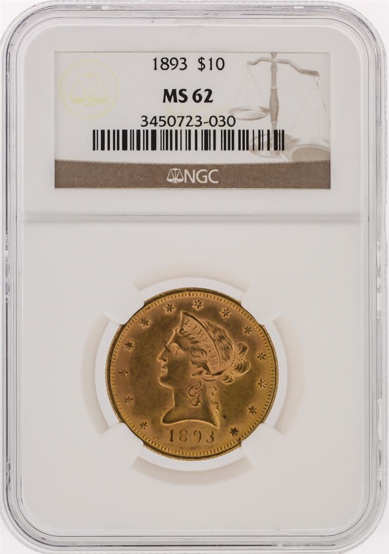 One 1893 NGC MS62 $10 Liberty Head Eagle Gold Coin. NGC Certified.
