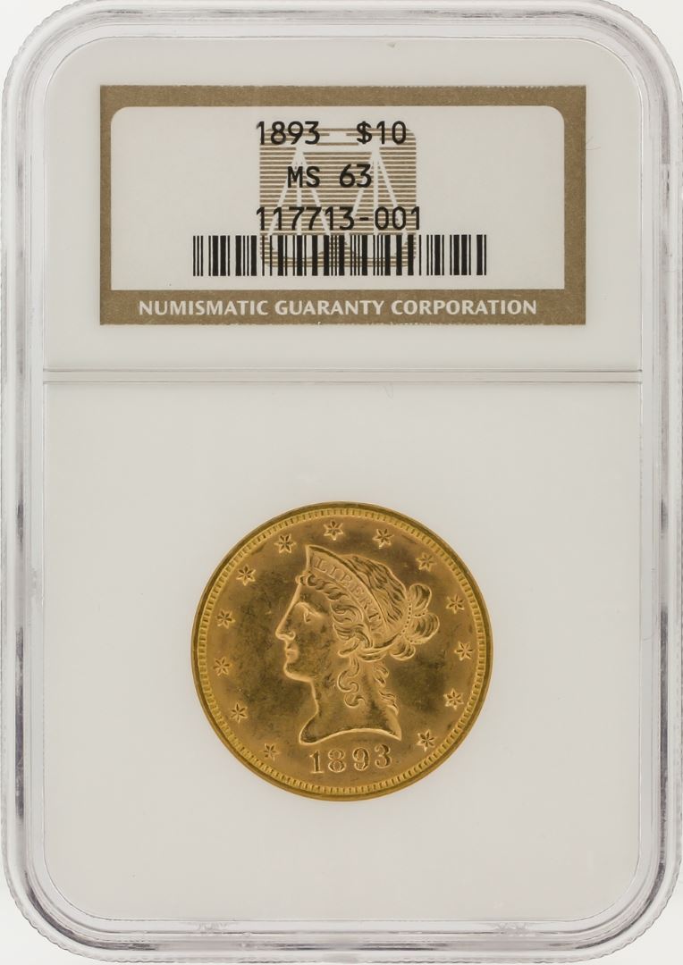 One 1893 NGC MS63 $10 Liberty Head Eagle Gold Coin. NGC Certified.