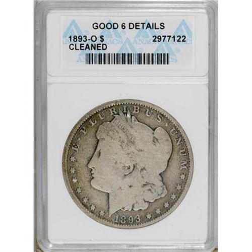 <B>1893-O $1 --Cleaned--ANACS. Good 6 Details.</B></I> NGC Census: (14/1472). PCGS Population (23/1987). Mintage: 300,000. Numismedia Wsl. Price for NGC/PCGS coin in G6 : $142. (#7224)<BR><BR><b>Shipping:</b> Coins & Currency (<a target="_blank" href="http://www.heritageauctions.com/common/shipping.php">view shipping information</a>)