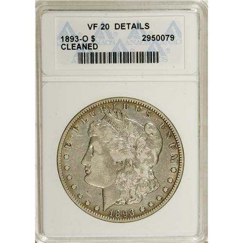 1893-O $1 --Cleaned--ANACS. VF20 Details. NGC Censu